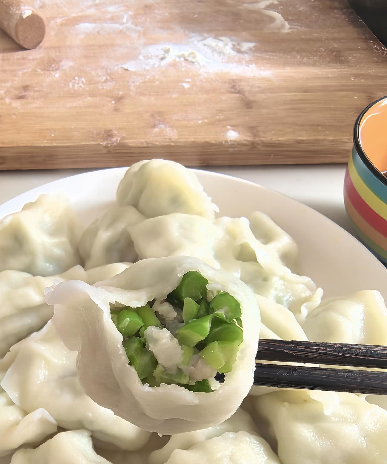 #晒出我的今日美食#今天包了一顿蒜苔肉饺子,格外的好吃,不但好吃,而且好包。 蒜