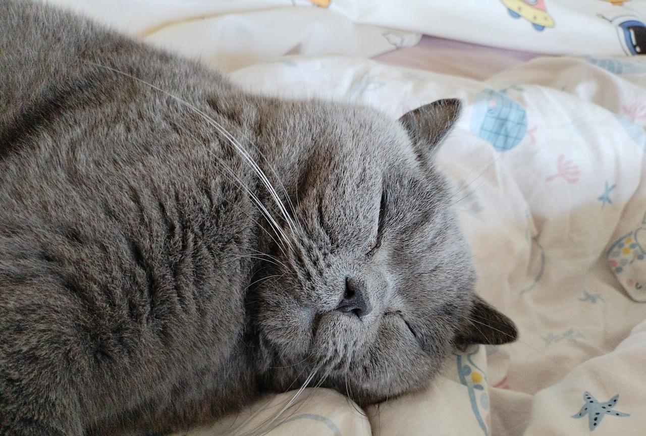 #相册里最近一张小猫的照片#乔鲁的午睡结界 午后的阳光漫过窗台,在地板上淌成一片暖金,蓝猫乔鲁便蜷在这片光里,把自己团成了个毛茸茸的蓝团子。 它的前爪轻轻搭在脸侧,粉粉的肉垫半露着,连耳朵尖都软塌塌地垂着,完全没了平日里竖起耳朵听动静的机灵劲儿。呼吸匀匀的,肚子随着节奏轻轻起伏,连尾巴尖都纹丝不动,仿佛被阳光钉在了原地。 喊它的名字,声音从耳边飘过,它眼皮都没掀一下;伸手轻轻碰了碰它的爪子,也只换来一声含混的“咕噜”,像是在抱怨打扰了好梦。这副全然放松的模样,哪里还有半分野外生存的警觉,倒像是把整个世界的安稳,都揉进了这一场午后的酣睡里。真要去了野外,恐怕连风吹草动都醒不来,还得先在暖阳里多睡上三刻钟才肯睁眼呢。