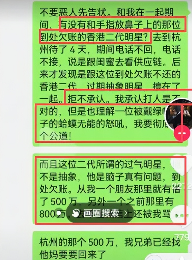 原来,郑铁头不仅是CoCo姐的合伙人,还是她的前男友。他称CoCo姐恶人先告状,两人争执并非因公司事务,而是自己被她背叛。CoCo姐出轨了一位“香港二代明星”,郑铁头还提供了几条关键线索:此人习惯将手指放在鼻子上,欠债不还,且是“过期抽象明星”。
