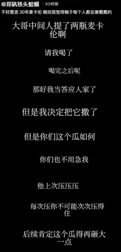 不过,出轨一事尚无确凿证据,不能妄下结论。但郑铁头这边有了新动作,9月18日,他突然删除了此前爆料的相关内容。随后发布视频称,是有“中间人”出面调和,他才决定撤下爆料。不过,即便删除了内容,他还是留下一句“帽子每个人都要戴戴的”这种模棱两可的话。