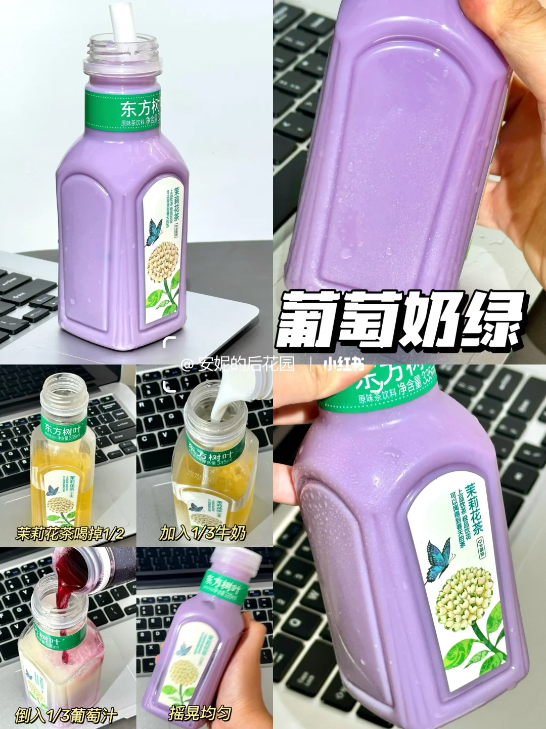 2⃣️葡萄奶绿🍇:1/3茉莉花茶+1/3牛奶+葡萄汁