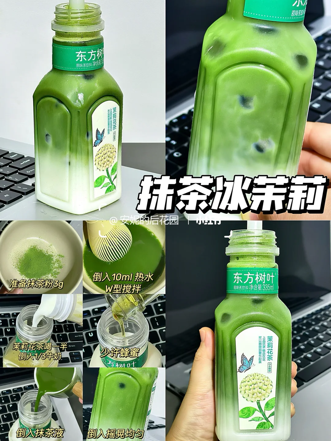 6️⃣抹茶冰茉莉:1/3茉莉花茶+1/3牛奶+抹茶液+1勺蜂蜜
