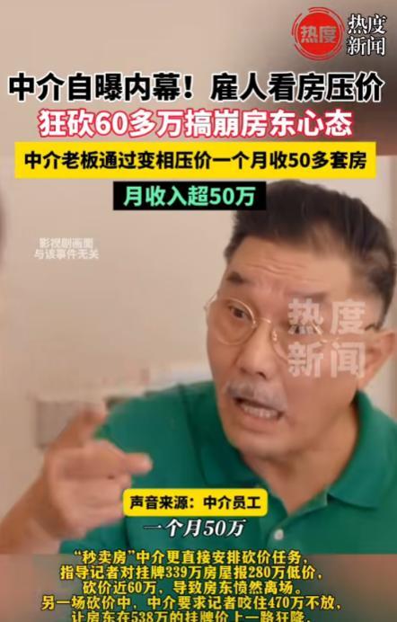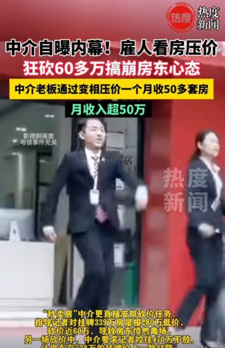 9月23日,上海一房东想以339万元的价格出售房屋,不料,却被中介压到了280万元,砍价近60万元,导致房东愤然离场,事后才知道这都是中介的“套路”,中介花钱雇人来看房子,通过变相压价一个月收50多套房,月收入超50万元,网友:买家卖家两头坑!(信源:热度新闻9月23日) 有一位上海的房东,手头有一套房子,他经过一番考量后,决定以339万元的价格将房子出售。这个价格,在他看来是合理且符合市场行情的。于是,他联系了某房产中介,将卖房的信息挂了出去。 没过多久,中介就带来了消息,说有买家对房子感兴趣。房东满心欢喜地等待着交易的顺利进行,可没想到,接下来发生的事情却让他大跌眼镜。 然而,事情并没有就此结束。后来,房东从一些渠道得知,这竟然是中介的“套路”。原来,中介为了获取更多的利益,采取了一种极为不道德的手段。 他们花钱雇人去看房,这些“托儿”会故意在房东面前表现出对房子的各种不满意,或者暗示周边房价更低等情况,通过这种变相压价的方式,让房东的心理防线逐渐崩塌,最终以极低的价格促成交易。 据了解,这种手段并非个例。有中介老板通过这种方式,在一个月内就收购了50多套房。 他们以远低于市场价的价格从房东手中拿到房子,然后再以相对合理的价格转手卖出,中间的差价利润惊人。这位中介老板月收入超50万元,这巨额的收益背后,却是众多房东的无奈和损失。 想象一下那个场景,中介安排的人一批又一批地来看房,他们或是挑三拣四,或是摇头叹息,让原本对自己房子充满信心的房东开始自我怀疑。 在不断的心理攻势下,房东的心态逐渐崩溃,最终不得不接受那远低于心理价位的价格。就像那位原本要价339万的房东,在中介的套路下,差点就以280万的价格卖出了自己的房子,若不是及时察觉到不对劲,他将遭受巨大的经济损失。 还有另一位房东,原本挂牌价是538万,中介却要求记者咬住470万不放,让房东在挂牌价上一路狂降。 房东在不知情的情况下,被中介的各种说辞和安排弄得晕头转向,最后眼泛泪花,报出了510万的价格。 可即便如此,这价格相较于最初的挂牌价也已经低了很多,而中介却在这个过程中不断压价,试图获取更大的利益。 这些中介的行为,不仅损害了房东的利益,也让整个房产市场的秩序受到了影响。很多网友在得知这些内幕后,纷纷表达了自己的看法。 有网友说:“这些中介真是两头坑,既坑卖家,又坑买家。他们用低价从卖家手中拿到房子,再高价卖给买家,赚得盆满钵满,却让买卖双方都承受了不必要的损失。” 还有网友表示:“这种行为严重破坏了市场的公平性,应该受到严厉的打击和惩罚。” 在房产交易市场中,中介本应起到桥梁和纽带的作用,为买卖双方提供专业、公正的服务。然而,这些不良中介却为了个人利益,不择手段,破坏了市场的健康发展。他们的行为不仅违背了职业道德,也触犯了法律的底线。 随着这一事件的曝光,相关部门也开始关注并介入调查。希望通过对这些不良中介的整治,能够让房产市场回归到公平、公正、透明的轨道上来,让每一个想要买卖房屋的人都能在一个健康的市场环境中进行交易,不再受到这些不正当手段的侵害。 毕竟,房子对于大多数人来说,都是一生中最重要的资产,任何损害其交易公平性的行为,都不应该被容忍。 对此你怎么看?欢迎大家在评论区留言讨论。