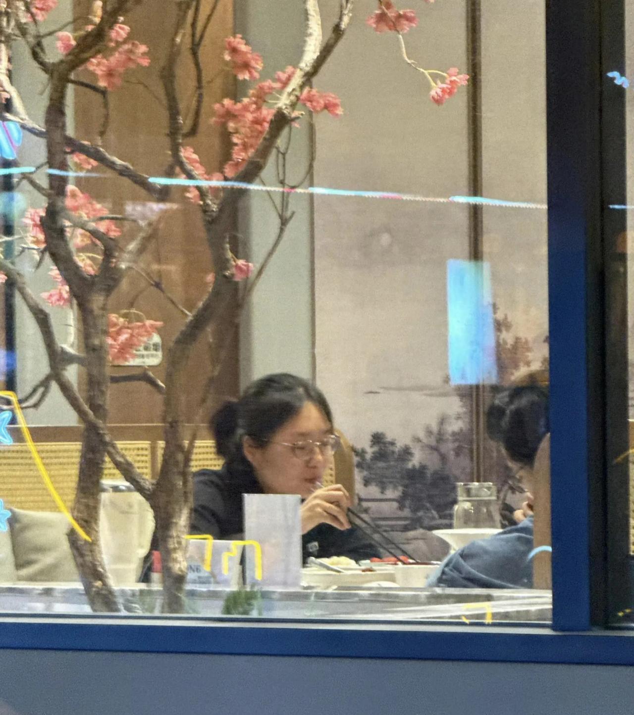 李雪琴和男友王一通约会聚餐,李雪琴本人看着肤色偏黑,扎着短马尾,戴着眼镜,脸有点