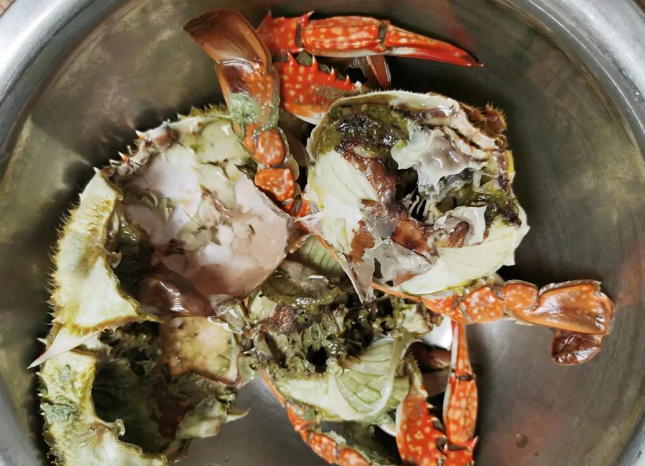 我让大连螃蟹忽悠了。自9月初开海以来,全大连人都在买螃蟹吃螃蟹。不少人还在网上晒金黄鲜美的螃蟹图,一个劲儿地说今天螃蟹如何如何肥,如何如何便宜,十五、二十、三十元钱一斤,五六十元、百八十元就能买一大锅,全家人吃不了……我经不住诱惑,就在大上个礼拜和前天买了两次螃蟹。第一次买,30元一斤,5只,花58元;第二次买,25元一斤,6只,花50元。但这两次购买的螃蟹,都无一例外的让我大失所望。11只螃蟹没一只像吹嘘的那样肥美,里边都是黑乎乎,乱糟糟,稀溜溜,除个别蟹夹根部有一点肉外,其余都是空的,瘪的,没见到大朵大朵白花花、颤莹莹的鲜肉……我将图片发到网上,内行的当地朋友纷纷予以点评。 有的说“你这价钱也只能买这种烂蟹子”; 有的说“你在摊上花二三十元不可能买到好蟹子,我们买蟹子都是直接到船上买,50多元一斤。” 还有的说“现在早市上哪有好蟹子,好蟹子都让饭店买去了”…… 看到这些网上留言,我恍然大悟,原来那些又肥又便宜的螃蟹早被有能耐的商饭从船上抢走了,或者被酒店这种有购买力、高消费的地方承包了。像我这种想吃好螃蟹又不想多花钱的人根本没那个口福。那些晒在网上的图多半都是虚假的广告,是别有用心的吹嘘加忽悠。