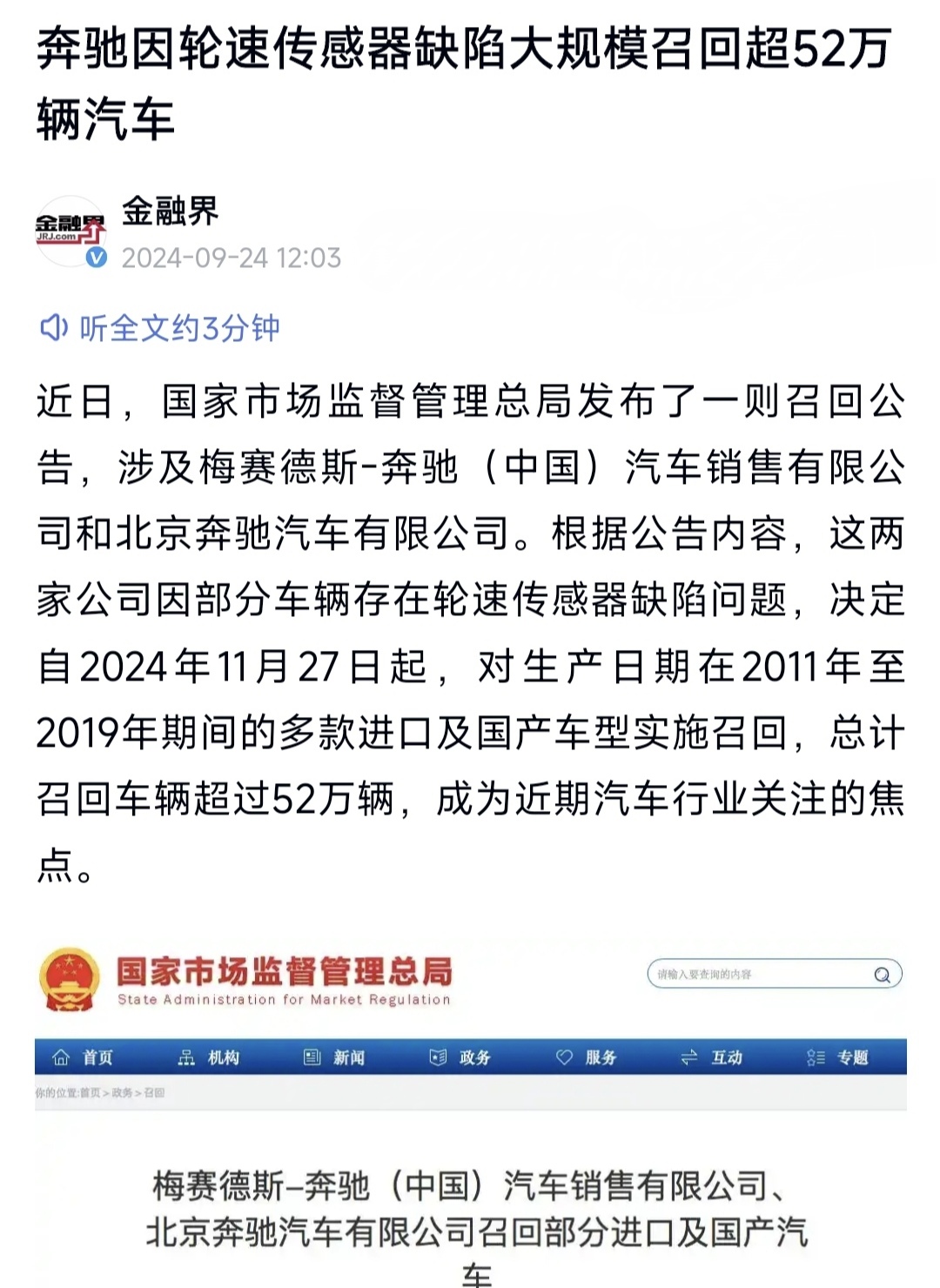 奔驰,召回52万辆汽车 宝马,召回23万辆汽车 奥迪,召回13万辆汽车 小米,召回11.68万辆汽车 路虎捷豹,召回10万辆汽车