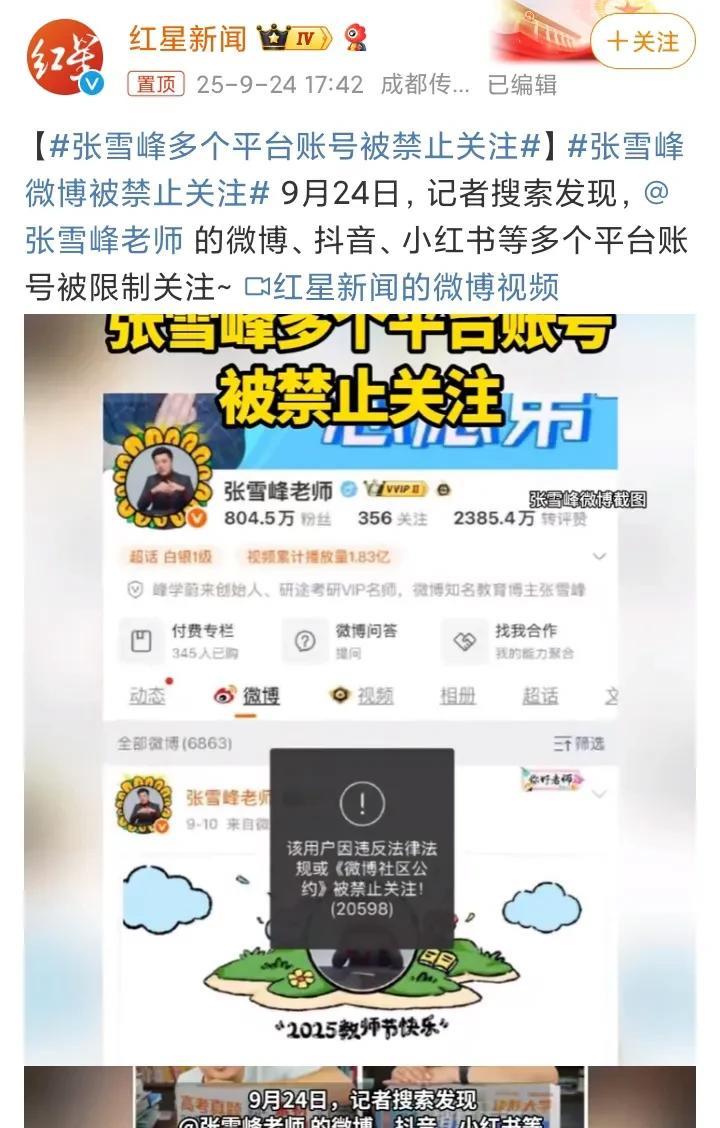 张雪峰,回应了! 9月24日,考研名师张雪峰多平台账号被禁止关注以后,张雪峰本人
