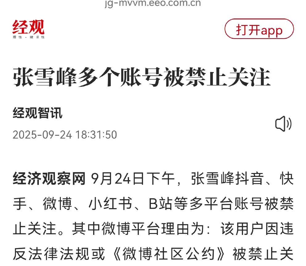 突发,张雪峰出事了? 9月24日晚上,张雪峰的多个社交平台账号已经不能关注,一开