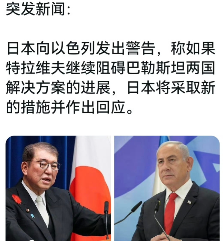 更值得注意的是,石破茂还明确表示,如果以色列一味阻挠“两国方案”的落实,日本将不得不采取相应措施。