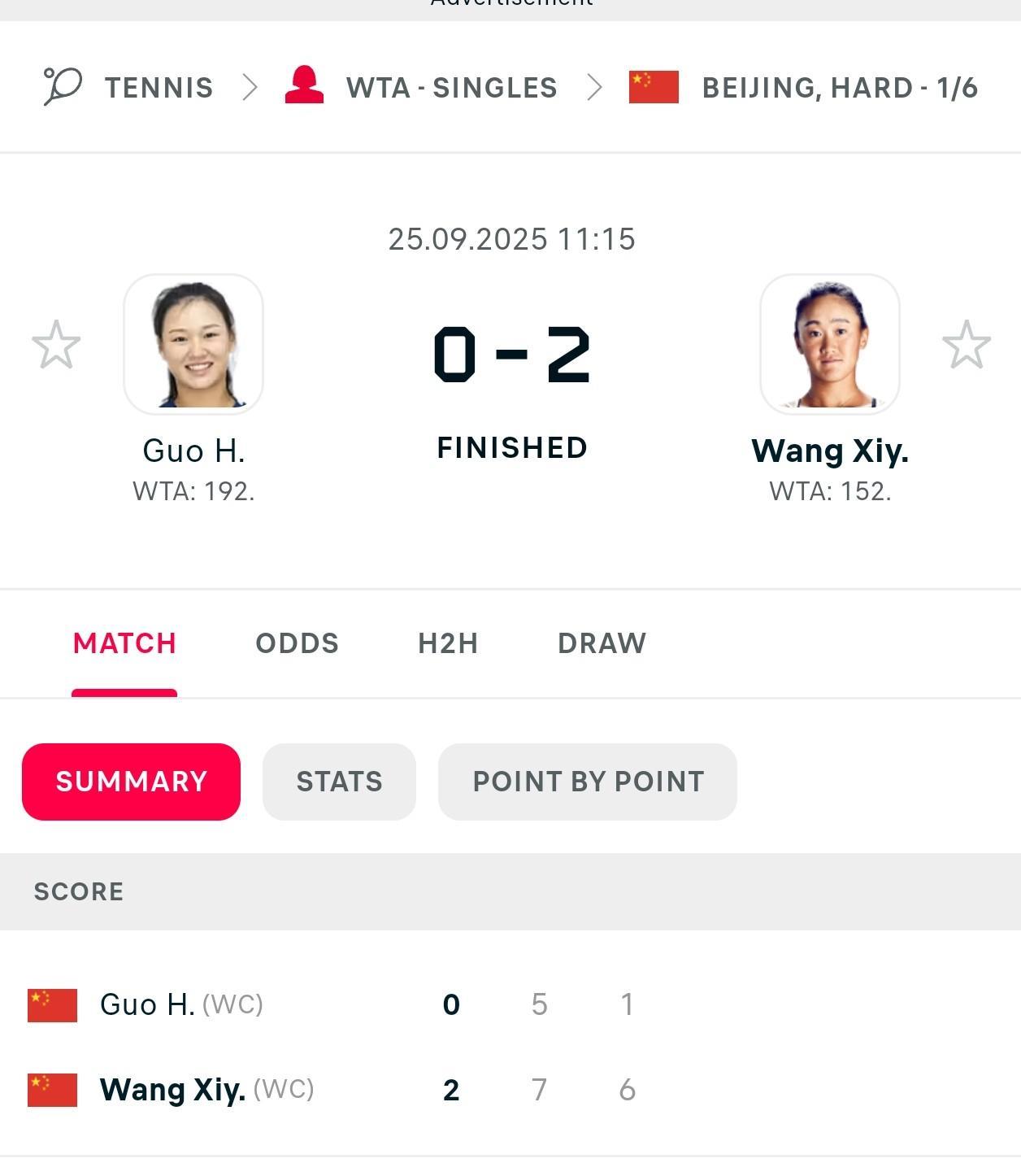 中网首轮开启 韦思佳26,06不到森梅兹, 被对手三连杀 朱琳61,63内岛萌夏