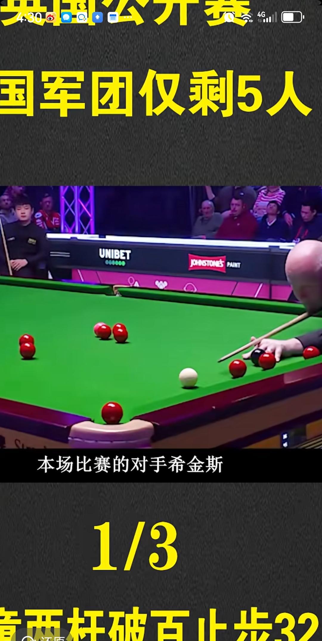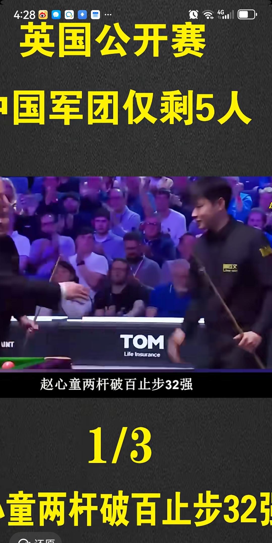 赵心童状态持续低迷,2:4不敌希金斯,无缘斯诺克英格兰公开赛16强。 期盼赵心童能够恢复到世锦赛的状态。