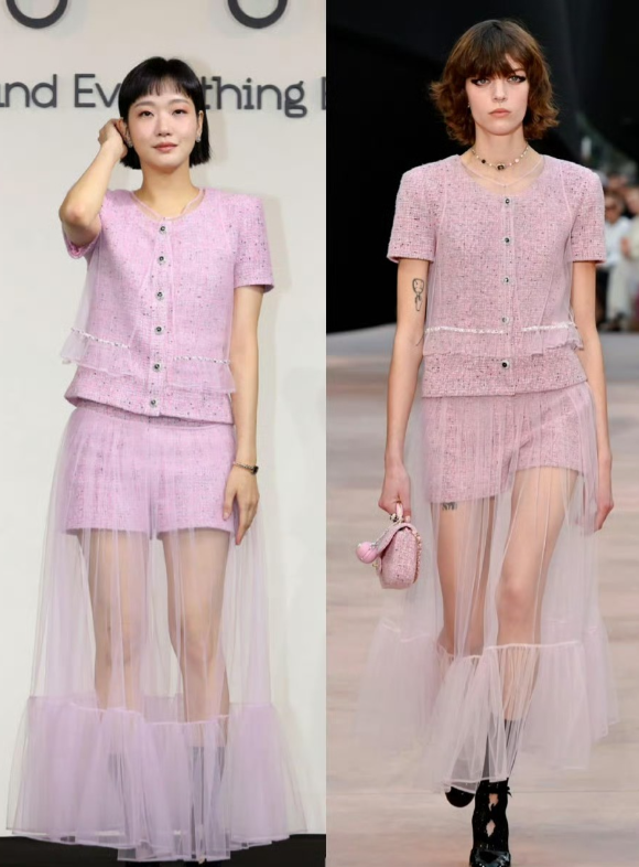 金高银这套紫色香奈儿好温柔啊! 第一眼可能不是那种冲击性的美,但越看越上头——那种舒展自在的劲儿,比硬凹的精致感高级太多了。 单眼皮笑起来像月牙,整个人透着松弛感,把香奶奶的优雅穿出了自己的味道。 不是冰山美人,而是像春日微风一样舒服自然。 果然能打动人心的从来不是完美无瑕,而是这种真实生动的气质啊!