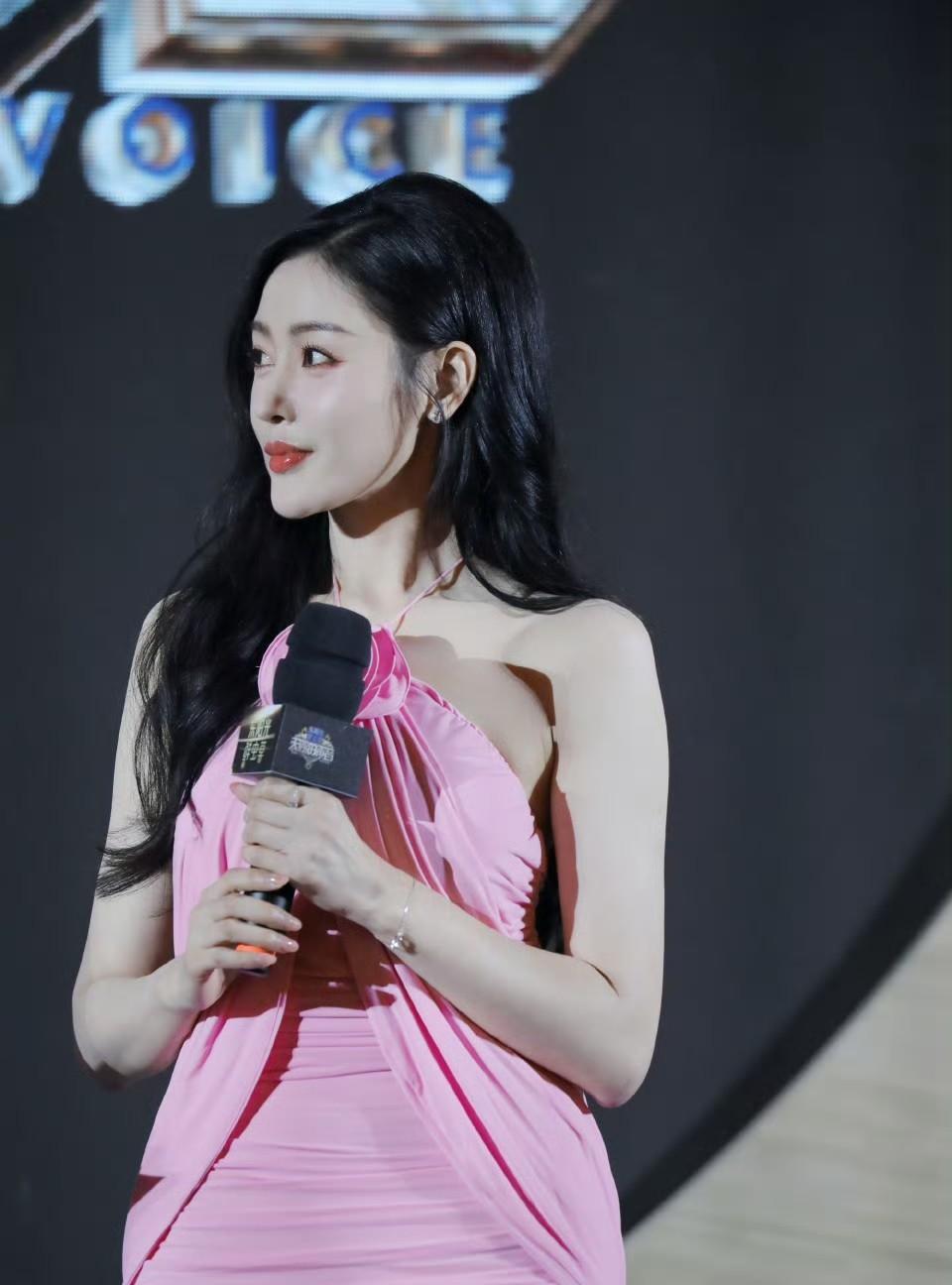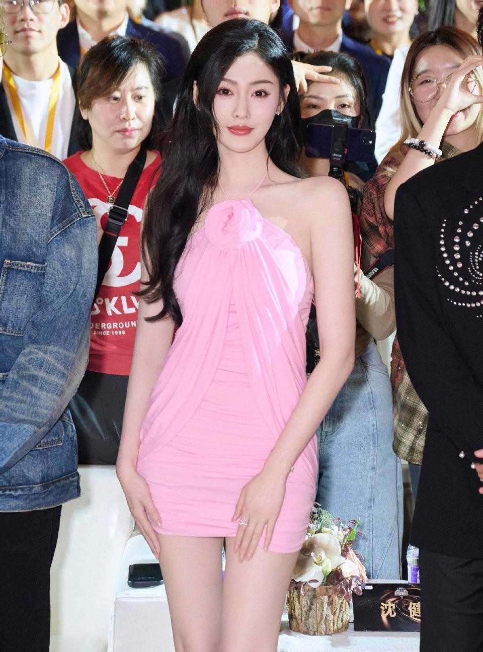 哇,张天爱这条粉色短裙真的绝了! 这哪是穿衣服啊,根本就是真人版CG建模,线条流