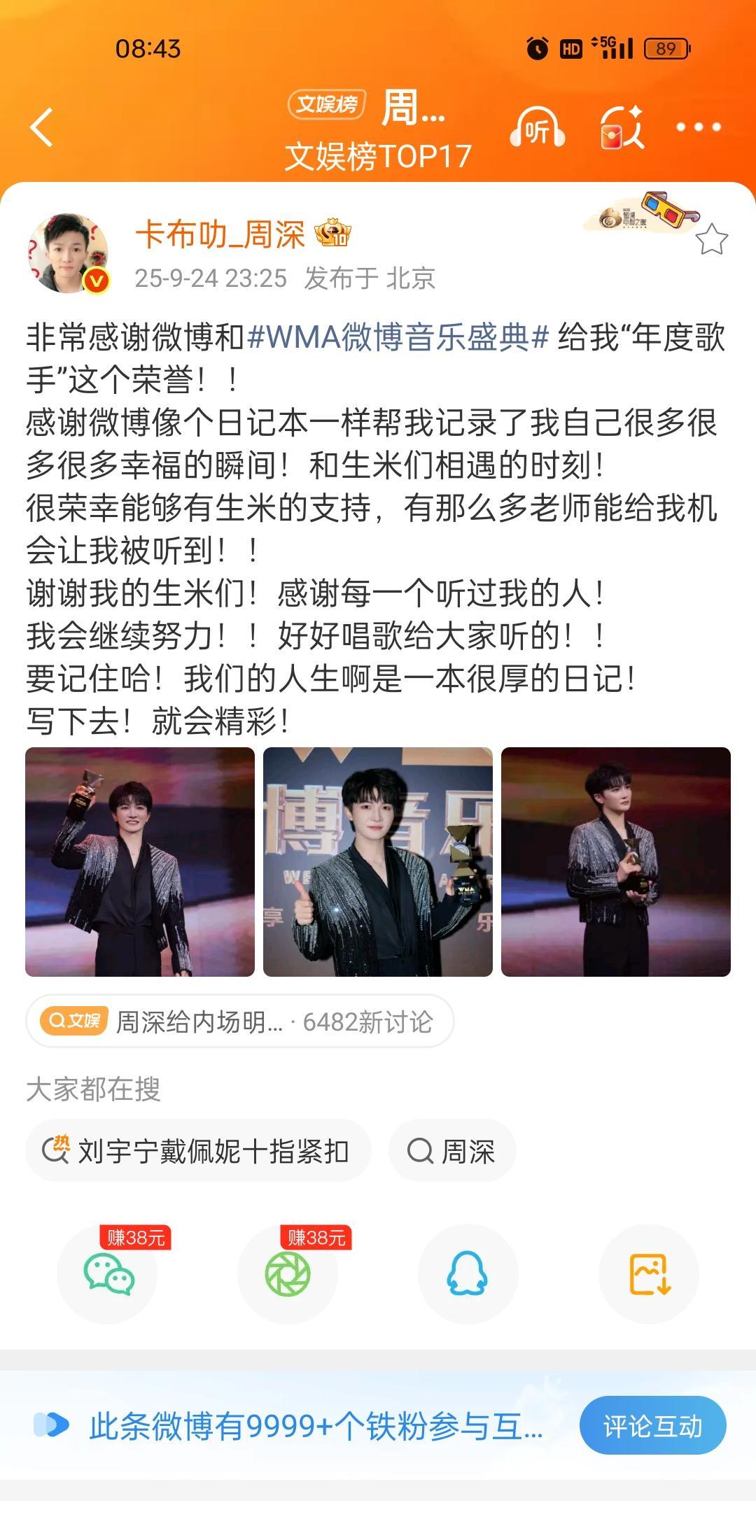 当周深粉丝的一天有多忙! 一早起来回顾一下昨天晚上的盛典舞台,还有好多新鲜的路透