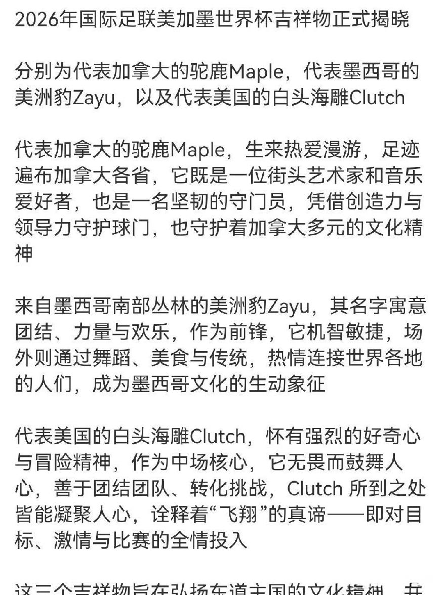 2026美加墨世界杯“鹿雕豹”组合 不过有网友吐槽: 这动画是20世纪初代2D画