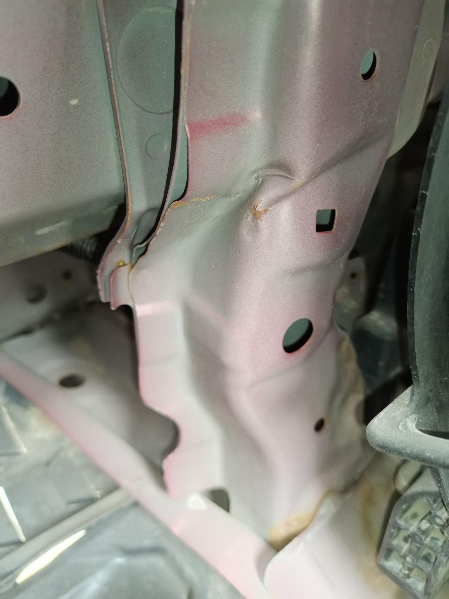 今天看了一台本田锋范,14款1.5L五挡自动型,2015年9月上牌,跑了12万公里,二手行情2万大。 买家是一对小情侣,小伙儿要带着女生国庆节回老家,但路途比较远,高铁票没抢到,飞机又不能直达,两人的行李也比较多,于是小伙儿想了个办法,买辆便宜的二手车开回去,后面再把车卖掉。 小伙儿确实有想法,不过跑高速长途,车况必须搞好啊!万一车坏在路上,或者出个什么事儿,那不光耽误事儿,还可能危害人身安全。所以,验车就安排上了。 检查结果不理想,车头有事故,前杠更换,大灯更换,水箱框架多处变形、焊接、开裂、生锈,而且维修的很潦草,发动机和变速箱倒是没啥问题。 小伙儿皱了皱眉头,这玩意儿有点儿烂啊!自己的开车风格比较激进,感觉不踏实,还是再看看别的车吧!