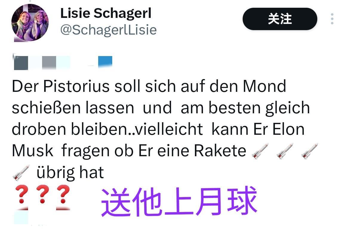 哈哈哈德国疯了——投入350亿欧打造【太空安全】——同时还是在德国多地每天都出现街头安全事件的前提下。 最近两个月以来,德国各地几乎每天都会出现随机伤人事件,曾经安全无比的德国街头变得面目全非。 德国人热评:应该把做出此决定的德国防长皮斯托利斯绑在火箭上送到月球去。