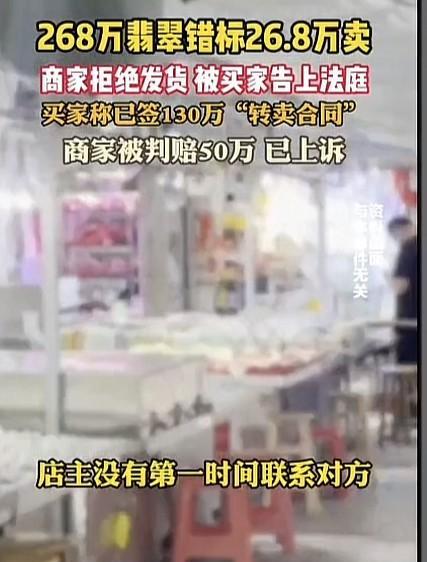 浙江余姚,一女主播在直播间卖了一件翡翠,下播后女主播发现,原本标价268万的翡翠