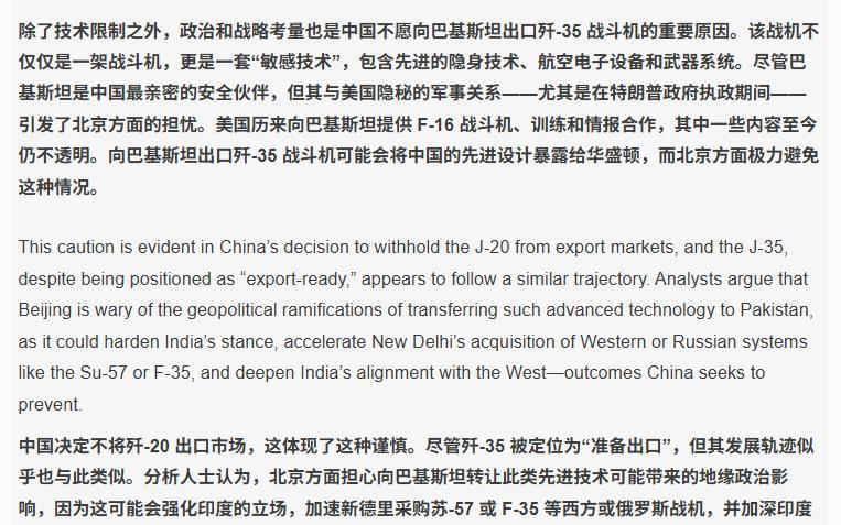 【印媒迷之自信:中国顾忌我们感受,不敢卖歼-35给巴基斯坦】 福建舰电磁弹射成功当天,印度媒体突然集体“脑补”出一套神逻辑:中国因顾忌印度感受,不会向巴基斯坦出口歼-35战机。理由是“怕印度彻底倒向西方,加速引进F-35和苏-57”。 一边贬低歼-35是“纸老虎”,吹嘘“阵风F4能轻松压制”;一边又幻想中国出于地缘顾虑主动“让步”。这种自相矛盾的论调,暴露出印度在战略认知上的严重错位。 事实上,中国若对巴出口歼-35,首要考量是技术保密需求,而非印度情绪。作为我国第二款五代机,其隐身涂层、航电系统等核心技术必然会有保留,这是国际军售常态,与“顾忌印度”毫无关系。 印媒将正常的技术管控强行解读为“对印让步”,折射出深层的战略自卑——既渴望被视作“与中国平起平坐的大国”,又无法摆脱对进口武器的依赖,只能靠“定义学”自我安慰。 回想5月空战中“阵风”被歼-10C击落的现实,印媒却仍沉浸在“阵风无敌”的玄学吹捧中。现代战争靠的是技术实力,不是嘴炮功力。若靠念经能赢,印度空军早该吹赢全世界了。 说到底,这场“中国顾忌印度”的戏码,不过是婆罗多式赢学的一场自嗨。骟鸡打不打鸣,太阳都照常升起。中国对外军售,从来只看国家利益与技术逻辑,轮不到别人加戏。