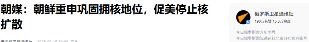 信息来源:俄罗斯卫星通讯社2025-09-15关于《朝媒:朝鲜重申巩固拥核地位,促美停止核扩散》的报道