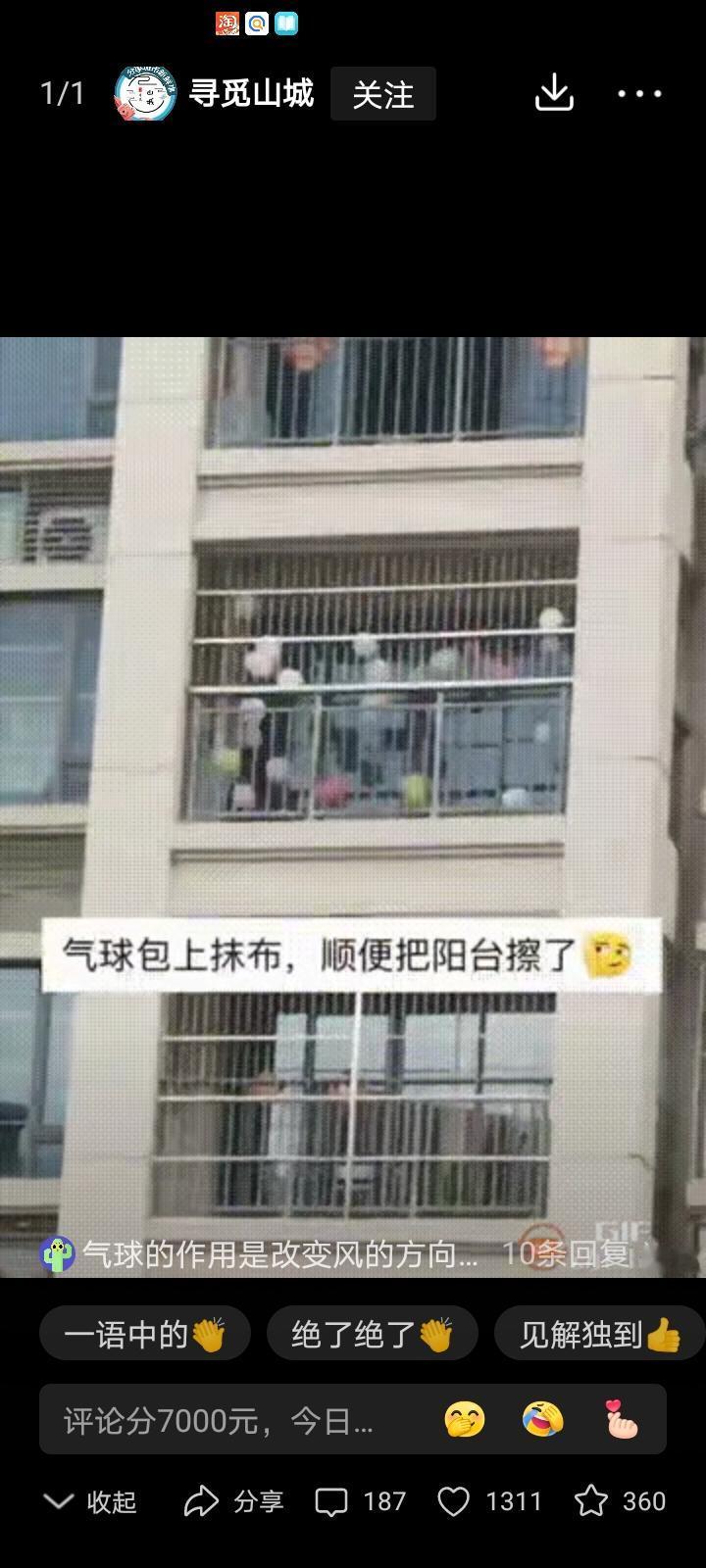“太有头脑了!”广东佛山,男子为了应对台风桦加沙,竟然一次性打了10多个气球,将它们全部放在阳台上,台风登陆之后,外面狂风大作,阳台的气球吹得到处飞舞,一开始邻居还以为男子是为了好玩,可是,网友看到后,却认为男子太聪明了! 台风天家家封窗收花盆,佛山一男子却在阳台拴满彩色气球,邻居瞅着直纳闷:这是跟风玩呢? 直到“桦加沙”狂风裹着哨声撞过来,答案才显出来——那些被吹得打旋的乳胶气球,压根不是摆设!风越猛,气球晃得越欢,像群软乎乎的“缓冲垫”,把直冲玻璃的气流劲儿蹭掉大半,硬是给窗户挡了灾。 有人说这是歪招,可仔细想,比起几百块的防爆膜,几毛钱的气球既省成本又管用,关键是能把“气流冲击”的道理揉进生活小办法里。这哪是瞎折腾?分明是普通人把学问用在了实处。 其实过日子的智慧从来不在书本里,就藏在这种“别人想不到,他敢试”的小细节里。你觉得这招靠谱吗?要是遇到台风,你会试试这气球防护法不?