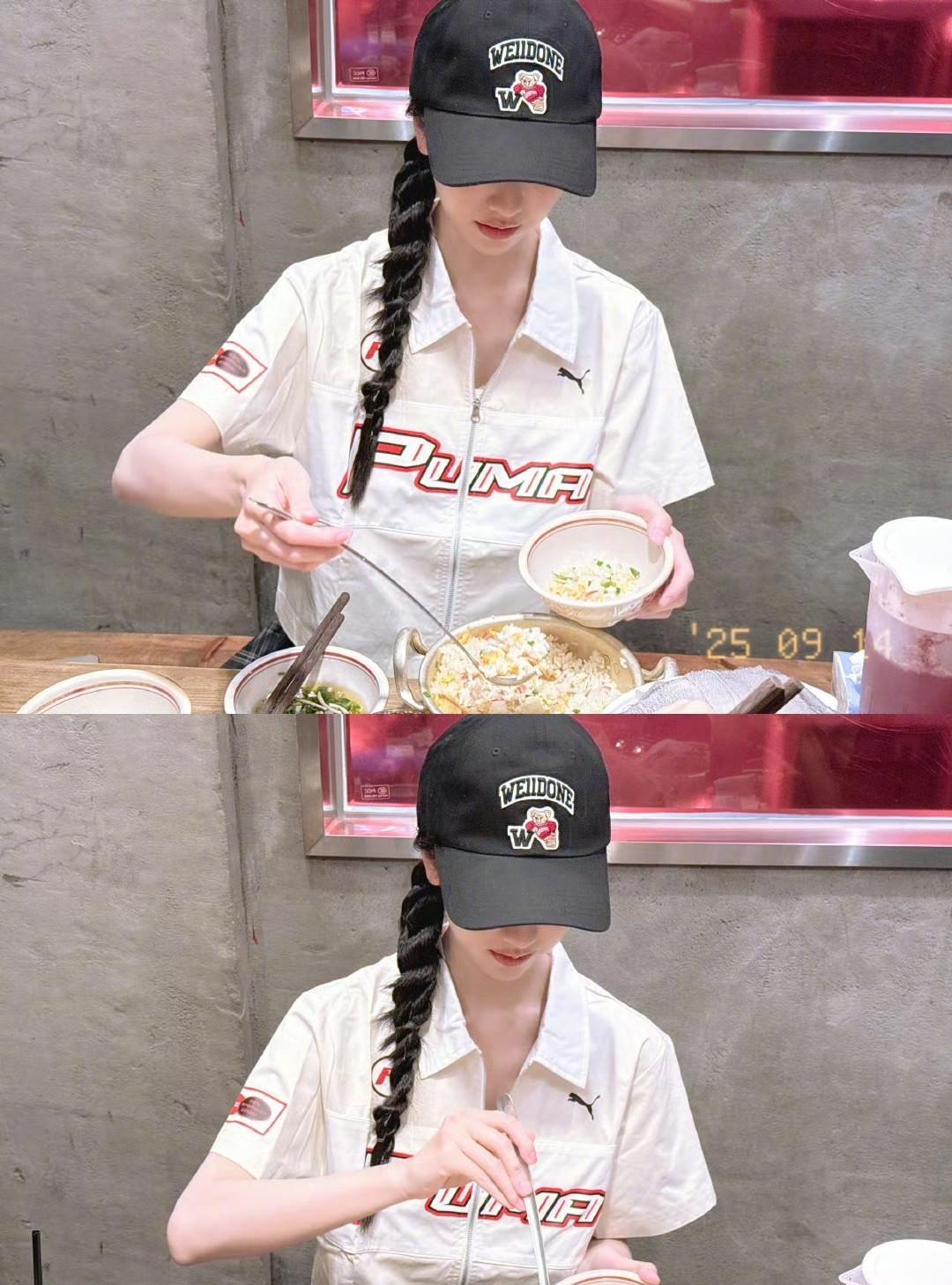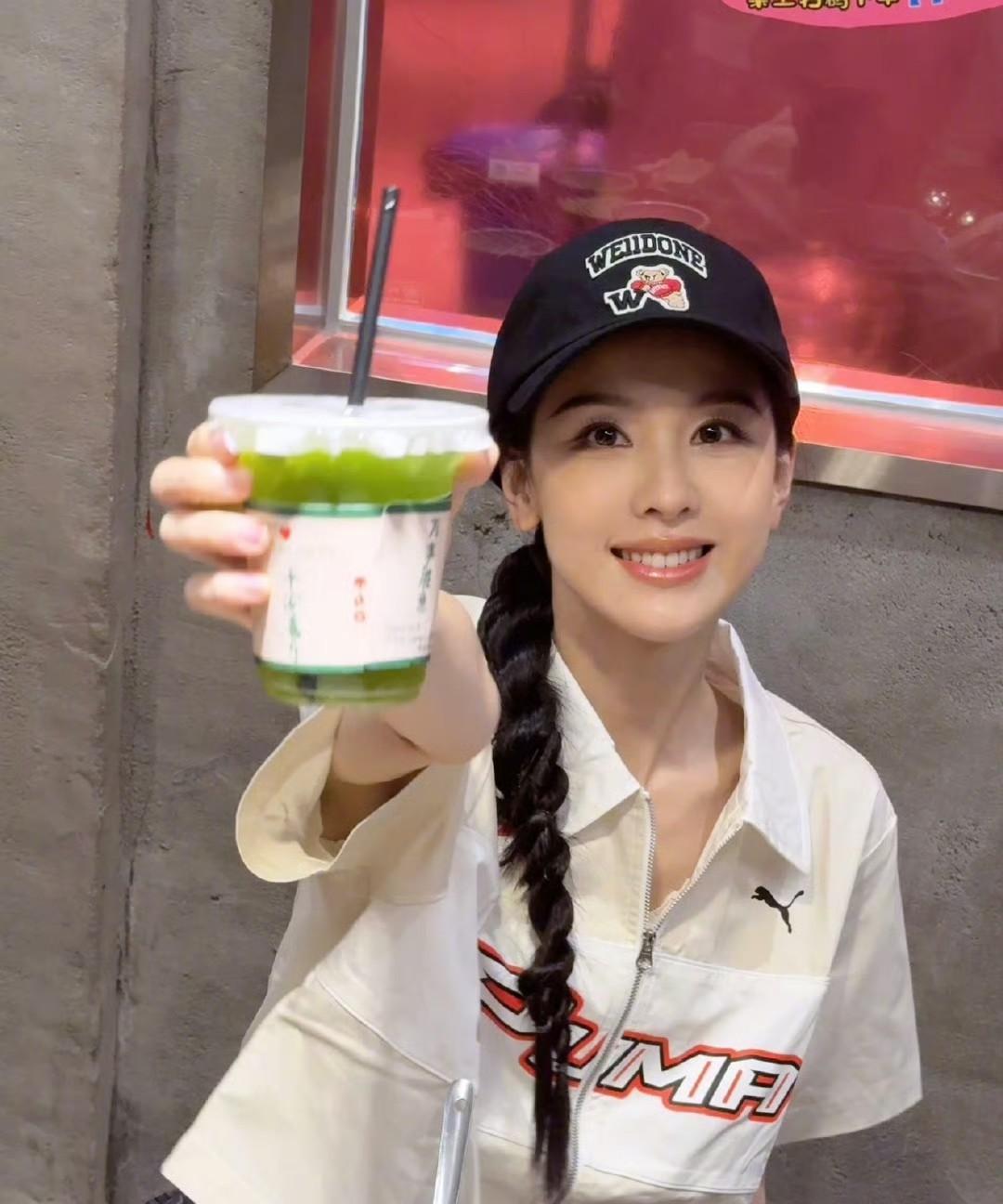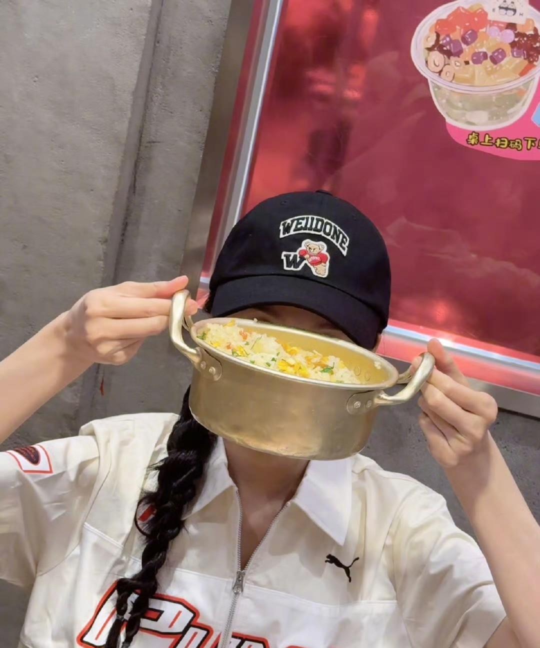 陈都灵分享美食,真是好身材不怕胖,这蛋炒饭,奶茶,肉片太接地气了,比全是素食的减