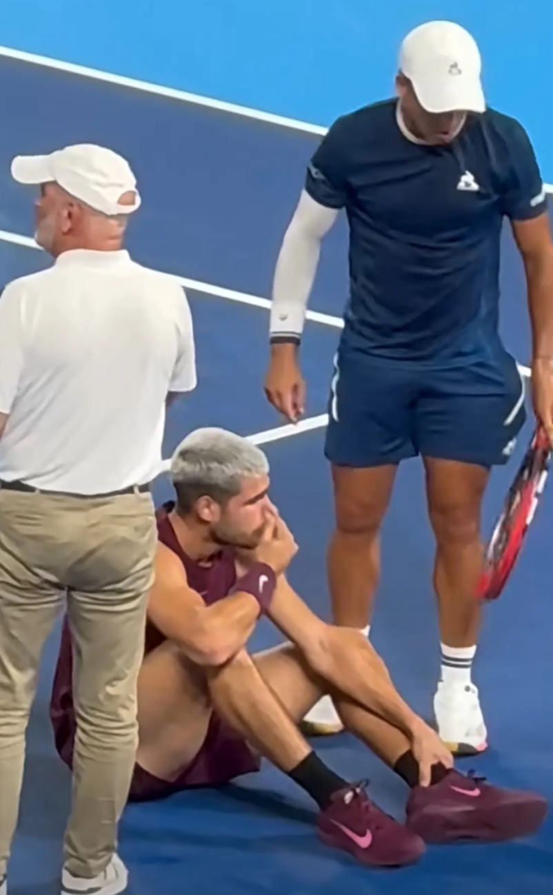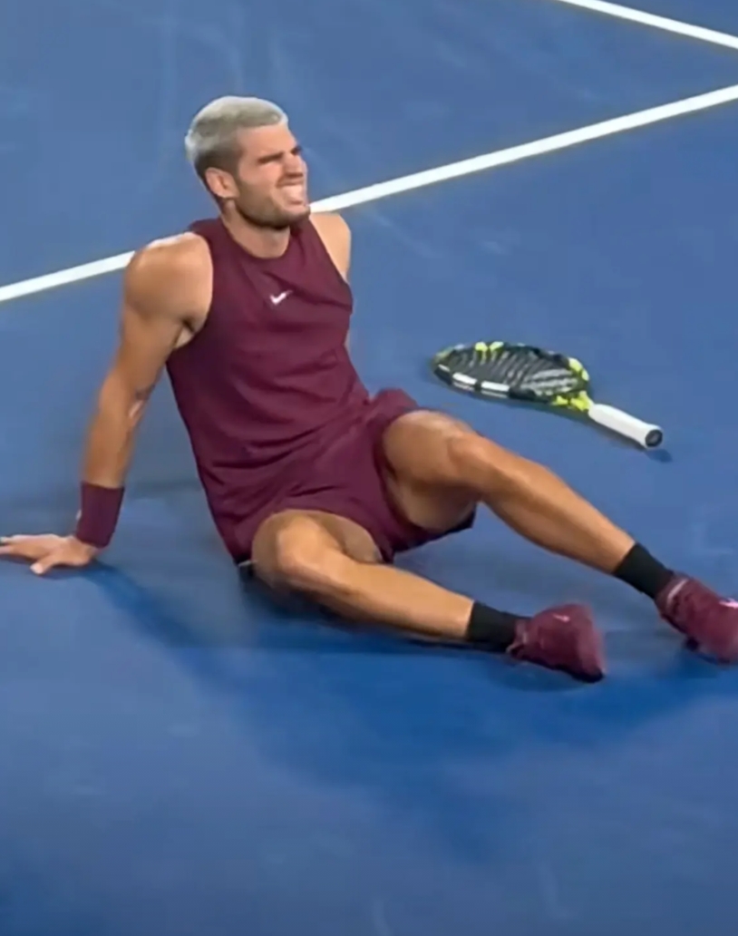 阿尔卡拉斯受伤了,放弃卫冕中网去参加日本公开赛,第一轮比赛就突然脚滑受伤,前一秒