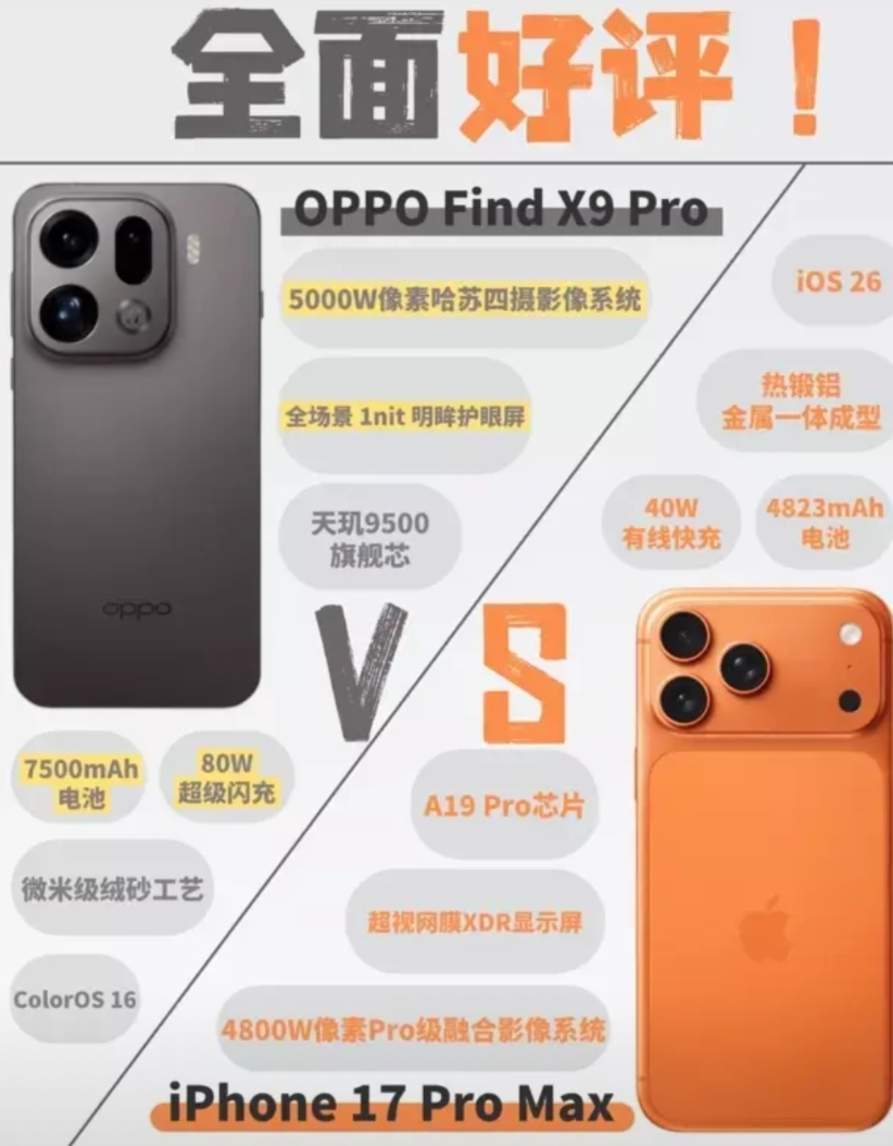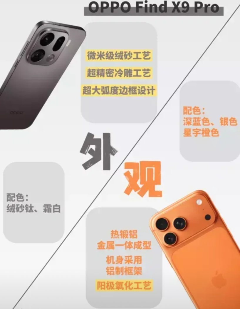 供应链深喉爆料:OPPO Find X9 Pro直接塞下7500mAh冰川电池,配80W闪充,比iPhone 17 Pro Max足足多半天电;后置2亿哈苏长焦+丹霞色彩镜头,Live 4K、8K照片同时首发,光圈、进光量、色彩全拉满。反常在哪?苹果刚吹完“最强一体铝”,OPPO反手微米级绒砂+超大弧边,缝隙肉眼几乎看不见,等于把“苹果式精致”复制再超越。