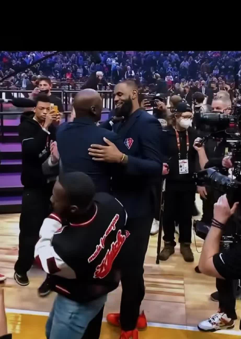 这就是气场。 詹姆斯与乔丹的拥抱,谁是老大,一目了然。 乔丹就像一个做错了事的孩子,乖巧的依偎在詹姆斯的胸前,詹姆斯温柔安慰。