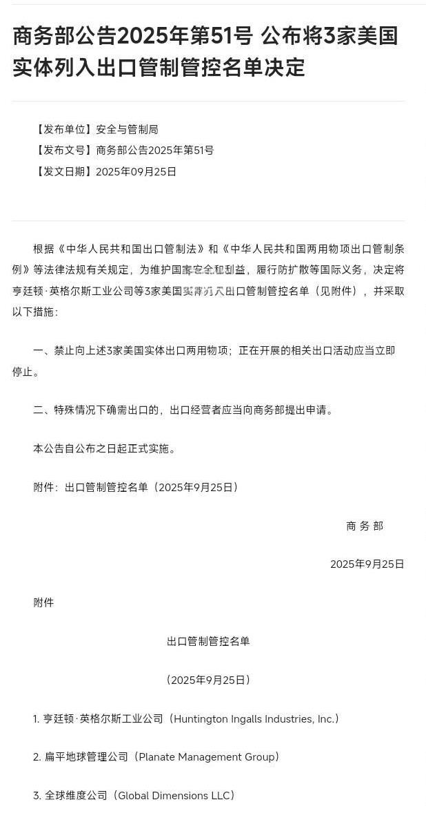 福建舰成功弹射后,商务部一天制裁6家美企,包括美军唯一核航母建造商 9月25日,商务部针对6家美国企业出台了管制措施,其中3家被列入出口管制管控名单,国内实体禁止对其出口两用物品;3家被列入不可靠实体清单,被禁止从事与中国有关的进出口活动。 就说这被盯上的亨廷顿英格尔斯工业公司吧,全美11艘核动力航母全是他家纽波特纽斯造船厂造的,连“福特”号电磁弹射器的核心电缆都是他家车间里绕出来的。 2024年该公司承接的美军订单占其总业务的68%,其中核航母建造维修就占了45%,妥妥的“美军航母专业户”。 而中国这次制裁,禁止向其出口用于航母甲板特种钢热处理的高温传感器,这玩意儿看着不起眼,却是让6万吨钢板在1200℃高温下均匀淬火的关键。 没了中国产的传感器,纽波特纽斯造船厂2025年开工的“企业”号核航母,甲板钢强度可能得从690兆帕跌到500兆帕,扛不住舰载机降落冲击不说,连俄罗斯“匕首”导弹的冲击波都可能震出裂纹。 而另外两家被制裁的雷神技术公司,和洛马旗下的奥什科什防务,更是美军后勤的“血管”——雷神的AN/SPY-6雷达是“福特”号的眼睛,奥什科什的M1075A1军卡负责运输核航母的反应堆备件。 中国禁止向它们出口用于雷达芯片散热的石墨烯散热膜和军卡发动机的稀土永磁体,雷神的雷达2024年因为缺散热膜,在波斯湾演习时过热死机三次。 奥什科什的军卡没了稀土永磁体,发动机功率直接降了30%,在阿富汗山区爬坡都得靠坦克推。 现在这两家被制裁,等于断了美军雷达的“退烧针”和军卡的“强心剂”,五角大楼后勤部门2025年预算里多列了27亿美元,专门用来找替代零件,结果全球转了一圈发现,除了中国,没第二家能生产同等规格的材料。 被列入不可靠实体清单的三家美企更惨,其中德事隆系统公司给“福特”号造的电磁弹射储能装置,2023年就因为缺中国产的高压电容,弹射效率比设计值低了22%。 现在彻底被禁止从中国进口电容,该公司生产线2025年3月被迫停工两周,急得CEO亲自飞日本找替代品。 结果日本货的耐压值差了1500伏,装上后储能装置直接爆了俩电容,把“福特”号的弹射系统炸出一堆故障码。 另一家被制裁的AECOM技术服务公司,负责美军核航母的放射性废物处理,没了中国提供的特种吸附树脂。 2024年在诺福克海军基地处理核废水时,放射性碘-131的吸附率从99.9%跌到90%,逼得美军只能把废水多囤三个月,光储存罐租金就多花了1.2亿美元。 但这波制裁的妙处在于“精准卡脖子”,专挑美军装备里“中国独供”的零件下手。比如亨廷顿英格尔斯造航母用的舰体密封胶,全球72%的高纯度硅基原料来自中国贵州的一家化工厂。 2025年4月该公司下单时发现被列入管制名单,转头找德国巴斯夫,结果德国货的耐海水腐蚀年限只有中国货的一半。 “福特”号要是用德国胶,五年就得返厂换密封层,比用中国胶多花40亿美元维修费。 还有雷神雷达用的相控阵TR组件冷却剂,中国产的氟化物冷却液沸点比美国本土产品高30℃。 2024年美军在红海部署的“宙斯盾”舰,用美国冷却液的雷达每四小时就得停机散热,用中国冷却液的能连续工作18小时。 现在没了中国货,美军只能给雷达“开空调”,结果又增加了舰体的红外信号,等于拆了东墙补西墙。 福建舰弹射成功配商务部制裁这组合拳,明摆着告诉美国:以前你卡我芯片脖子,现在我卡你航母腰眼——你有电磁弹射技术,我有反制你供应链的招儿。
