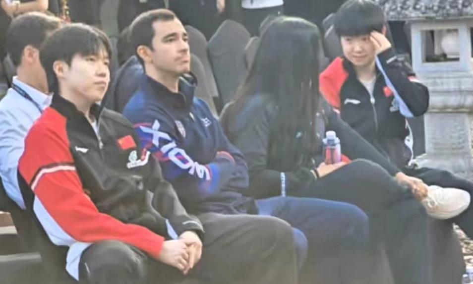 就知道周到会这么安排, 一共四个人的座位, 她硬是把俩人分开, 这心操的太皱巴了, 哥姐倒是大大方方的, 不让挨着就不挨着呗! 莎莎跟迪亚兹见面, 少不了中英文切换, 姐妹俩能好好交流, 估计王楚钦在憋笑, 毕竟他英语很流利, 能听懂迪亚兹说啥。 雨果很少有机会抽签, 估计就想避开王楚钦, 坐在一起的四个人, 想法一定是东南西北![捂脸] #记录真实生活#