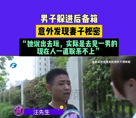 5月20日,郑州一男子疑妻出轨,于是藏进车辆后备箱尾随。途中听到妻子与人暧昧通话