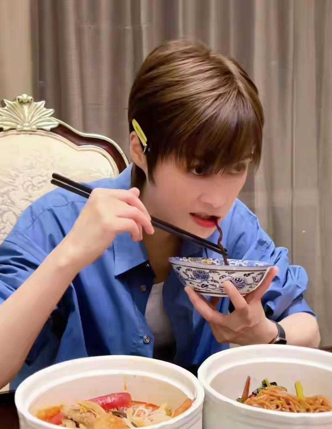 李宇春柳州唱完歌就炫粉!41岁穿蓝衬衫好少年,三种螺蛳粉吃到冒汗![点亮平安灯][比心] 9月20号李宇春在柳州开完演唱会,没歇着就安排上了当地螺蛳粉,还是直接打包回酒店的三种经典口味——干捞、烫粉和炒粉。镜头里她穿件简单的蓝色衬衫,头发别着发卡,41岁看着特清爽,完全是少年感那味儿。本以为四川妹子能吃辣,结果尝了口微辣就冒汗,笑着说这辣度已经够劲儿了。她还跟团队念叨:“真正的螺蛳粉就得在当地吃,新鲜酸笋一点不臭”。[比心]