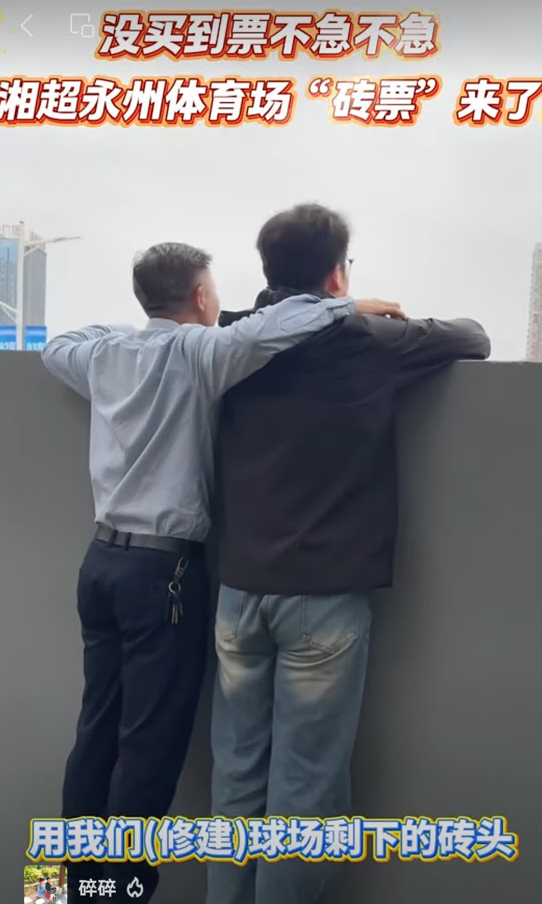 “告发子”永州没完没了啦,挂票还在,砖票来了,还分“情侣砖”“单身狗砖”——[泪奔][捂脸] 刚刚在永州融媒体中心,一美女记者朋友圈刷到的。永州湘超策划运营负责人出镜,说永州不仅有VIP挂票,还新推出VIP砖票,以方便未买到票的球迷朋友现场看球。 该负责人强调,砖是大砖,是修体育场时剩下的。分“情侣砖”和“单身狗砖”两种,因为砖足够大,所以无论哪种砖票,都很安全,球迷朋友大可放心。 怎么说呢,穷家富路,“告发子”永州正想方设法利用一切资源和可能接纳、拓展这波湘超流量。挂票视野开阔,砖票稳当方便,你选哪个?