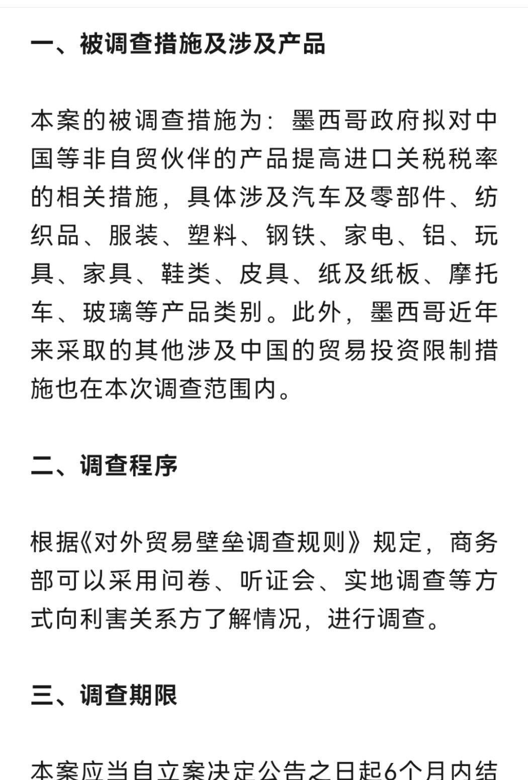 中方出手了!一天内启动两项调查,稳准狠反制墨西哥 根据商务部网站的消息,25日,