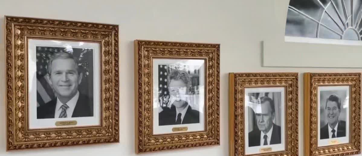 伤害性不大,侮辱性极强![偷笑] 据媒体报道,特朗普更换白宫“总统荣誉长廊”上