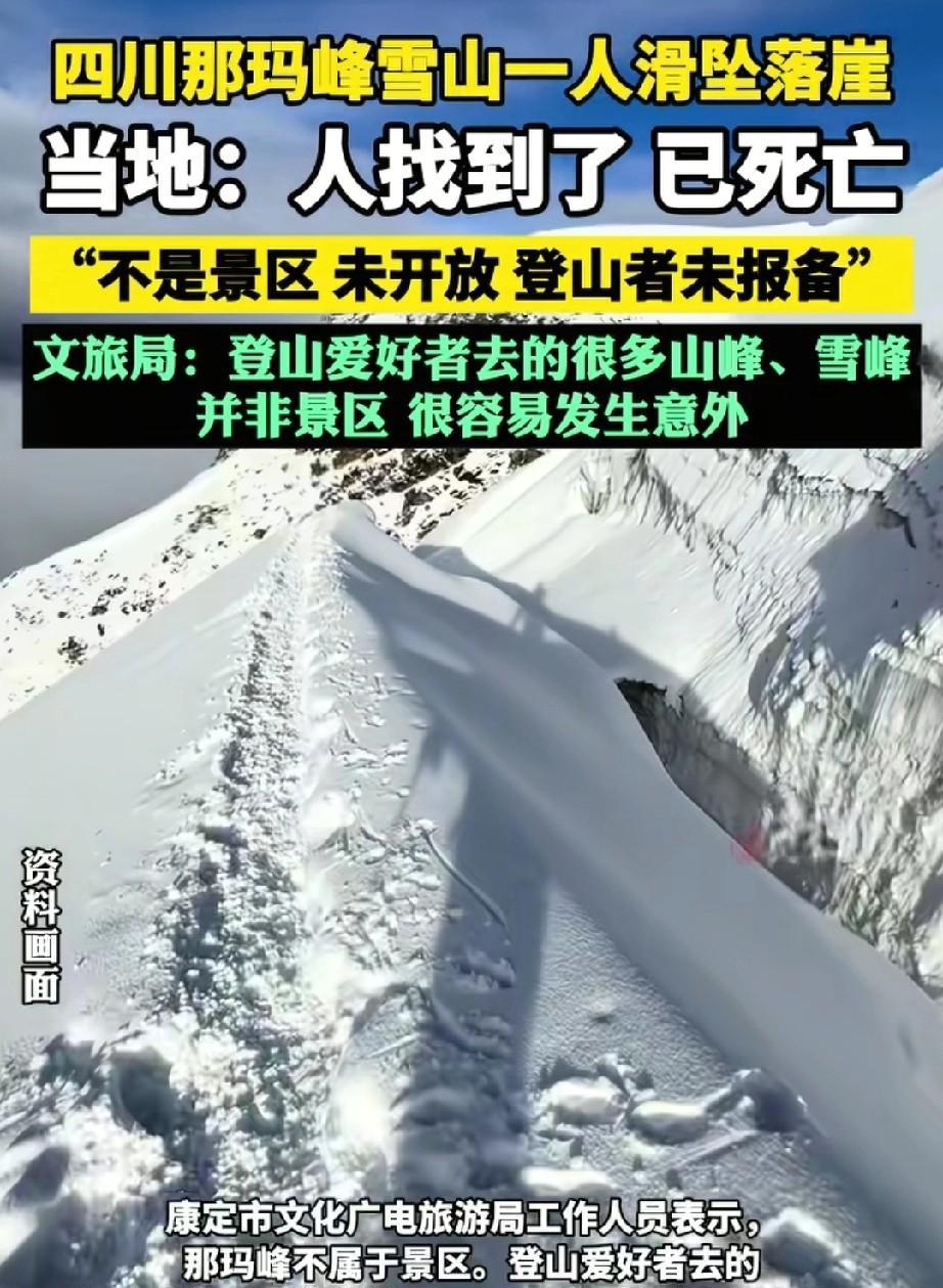 四川雪山滑坠落崖者已确认死亡,她蹲着拍照起身时发生意外,曾尝试自救失败,手里连副