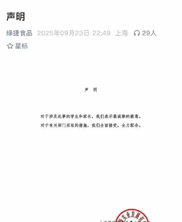一边因为学生家长的声讨做出史上最短的道歉,一边又中标上海新的学校学生餐饮项目,对于上海绿捷实业发展有限公司,真是让你佩服的五体投地,然后又无可奈何。 为什么既五体投地,又无可奈何呢? 因为上海绿捷实业发展有限公司为上海16个区600多所中小学及幼儿园提供学生餐饮配套服务。近期,因为虾仁炒蛋问题,学生家长普遍反映,上海绿捷提供的学生套餐质量差,不新鲜,没营养。 对此,上海绿捷发表了一封毫无诚意,史上最短的道歉信,但是仅仅两天后,上海绿捷又中标了一个学校的餐饮项目。 意外不意外?惊喜不惊喜?