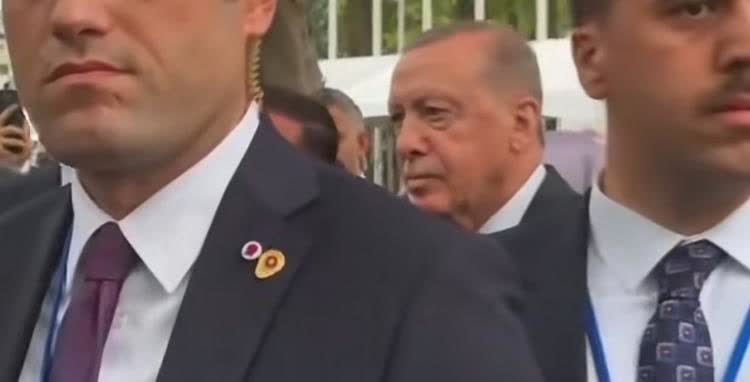 眼睁睁看着特朗普的车队疾驰而过,被拦在路边的土耳其总统埃尔多安的眼神里透着不满!