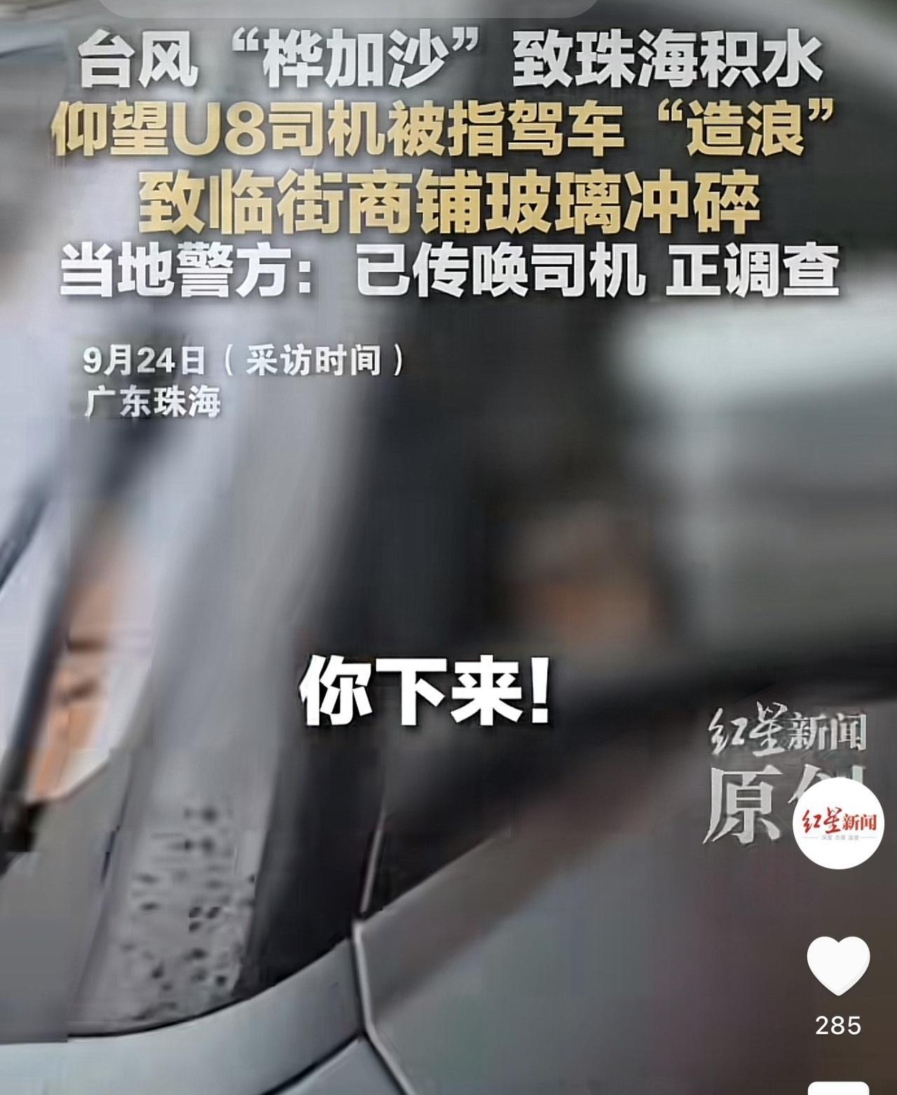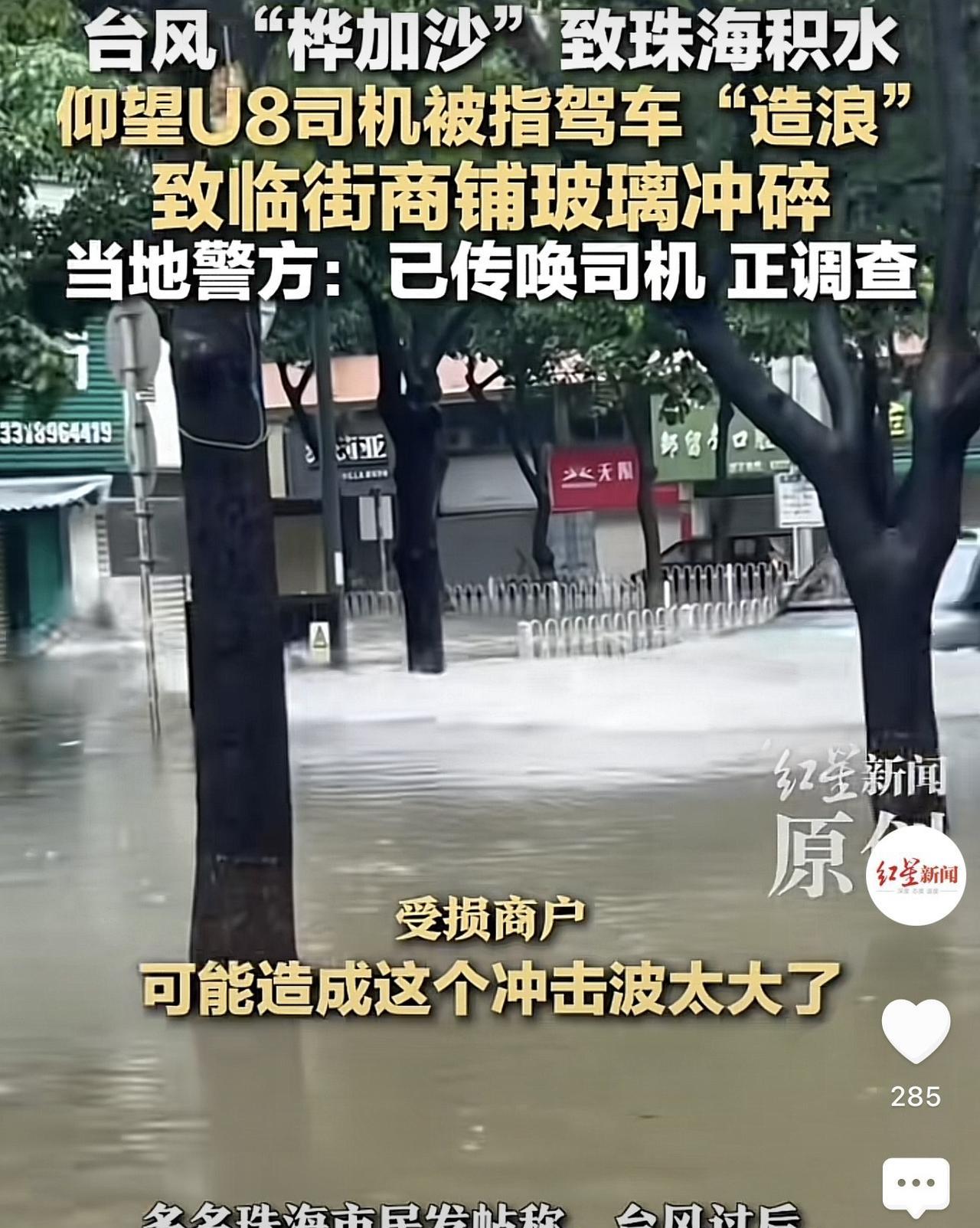 广东珠海,由于台风过境导致当地道路积水严重,一男子驾驶着一款国产越野车在路上行驶,因为车头造成的浪直接将沿路商铺玻璃冲碎,男子因此被路边的商户给拦了下来,报警后,警方表示已经传唤司机,目前正在调查,网友看过后表示,这款越野车质量真好。 现场视频显示,一男子驾驶着一款高端的国产电动越野车,在积水的路面行驶,此时,车头形成的水浪直接冲向了路边的商铺,据其中一商户称,水浪直接把玻璃门给撞碎了,而且,虽然店里进了水,但是监控等电力还是在正常运行的,但是水浪过后,监控全部黑屏。 越野车司机的这一行为,惹怒了路边这些商户,大家站在车前将越野车给拦了下来,其中一名商户要求男子下来,已经三次了,在那里摇来摇去三次了,目前,当地警方表示,已经注意到此事了,并将涉事司机传唤到了派出所,目前正在进一步调查中。 事发后有人说,天灾没办法躲避,但是这确实人祸,这司机应该抓起来。 还有人直接扒到了涉事司机的社交账户,账号显示,该男子发布了多条视频,其认证信息为当地一机械公司。 也有人说,买得起上百万电车的人,没想到是这种素质。 那么,涉事男子的行为,将面临什么样的处罚? 显然,男的目的是为了开车玩水,并不是故意要造成沿路商铺损失的,但是,客观上,男子应当预见到自己的行为的后果,即可能会导致沿路商铺二次受损。 而男子这样做纯粹就是取乐,但是不得不说造成了他人损害的后果,那么,男子的行为,严格意义上来说,这是一种寻衅滋事行为。 所以说,不要把自己的快乐建立在别人的痛苦上,虽然这部越野车号称能在水里开,但是,你想玩的话,可以去河里、湖里甚至是海里,在路上故意制造水花,冲坏了别人的玻璃和设施,那么就不是一句对不起这么简单了。 总而言之,即便男子最终不承担刑事责任,也要对商户的损失负责。 最终,这名男子被行政拘留了10日,也算是对他应有的惩罚。 对此,你对本案有什么看法? —————————— 关注我,带你评析法律热点,关注冷暖人生。 文章原创,抄袭必究 #头号创作者激励计划#