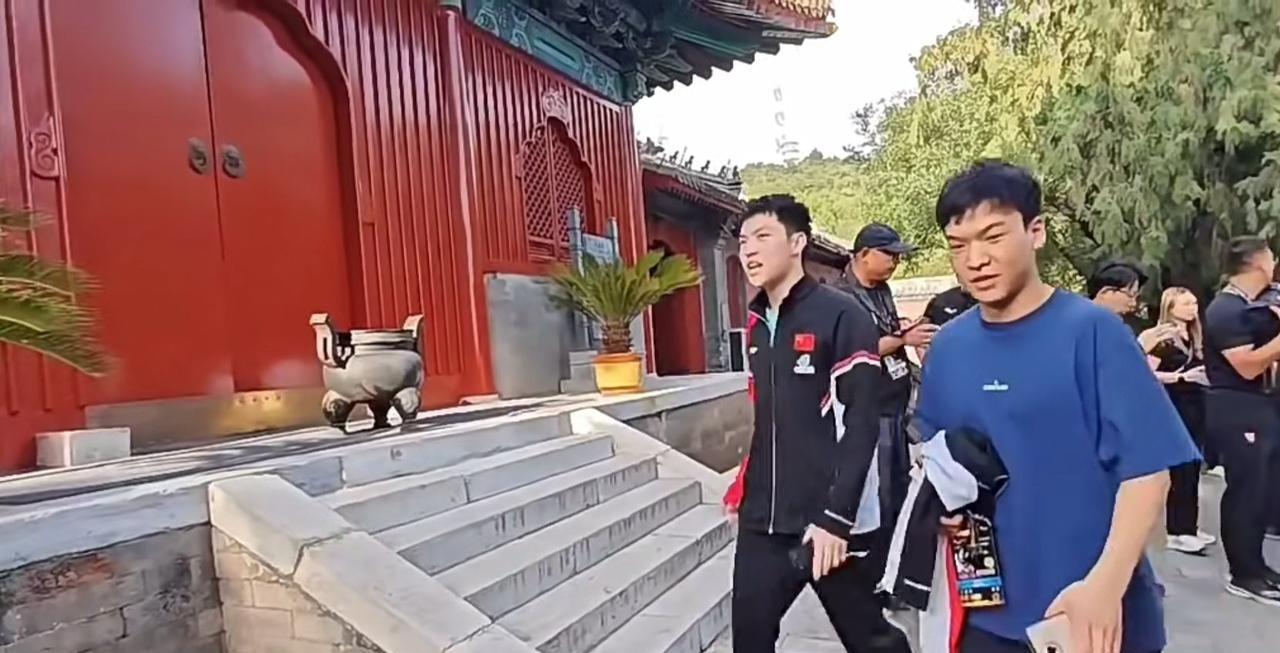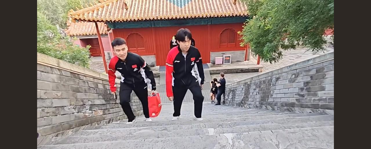 王楚钦吐槽:这是谁设计的抽签仪式? 哈哈,没想到吧,原来抽签也要热身啊。看到莎莎和迪亚兹先爬楼梯上来了,王楚钦和牛冠凯走在后面,王楚钦爬楼梯走出来螃蟹步,把大家都逗笑了,上来后对着镜头还吐槽了一下,看到有网友说:“膝盖不好的人真的爬不了楼梯,我说的是我自己。” 这次比赛在北京,国乒也是今天下午才到的首钢园,看到大家都换上队服来现场了,大家从下面爬楼梯上来,都累的够呛,确实不知道是谁想得注意,这次换到这里抽签了。还是和去年一样,抽签仪式前有京剧表演,看到莎莎和迪亚兹坐在一起,聊的特别开心,迪亚兹还打开手机让莎莎看。 现在女单的签表出来了,这次桥本帆乃香在上半区,和王艺迪是2/8区,这是又要考核一下大迪能不能打得过桥本了吧。后天比赛就要开始了,国乒队员们加油哦!