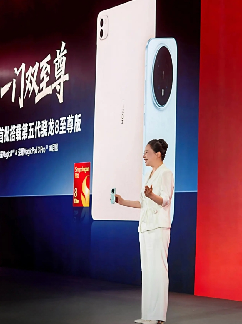 刚看到荣耀产品线总裁方飞,分享了参加高通骁龙峰会,受邀演讲时候公开展示荣耀Magic8,从新品外观来看,我也是蛮喜欢的,延续了荣耀品牌设计语言,辨识度蛮高,方总表示原创的AI追色功能也是亮点,这款产品还支持AI自进化能力,期待10月发布会的时候