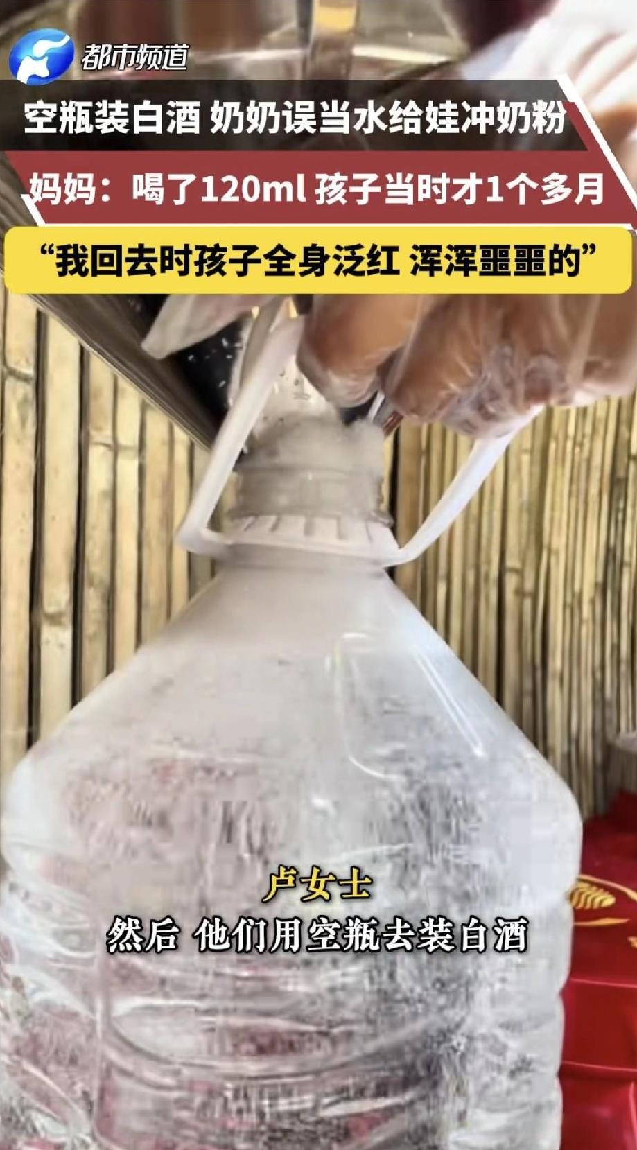 孩子奶奶用白酒当成水给孩子冲奶粉,儿媳妇讲述,自家孩子冲泡奶粉都是用纯净水冲泡