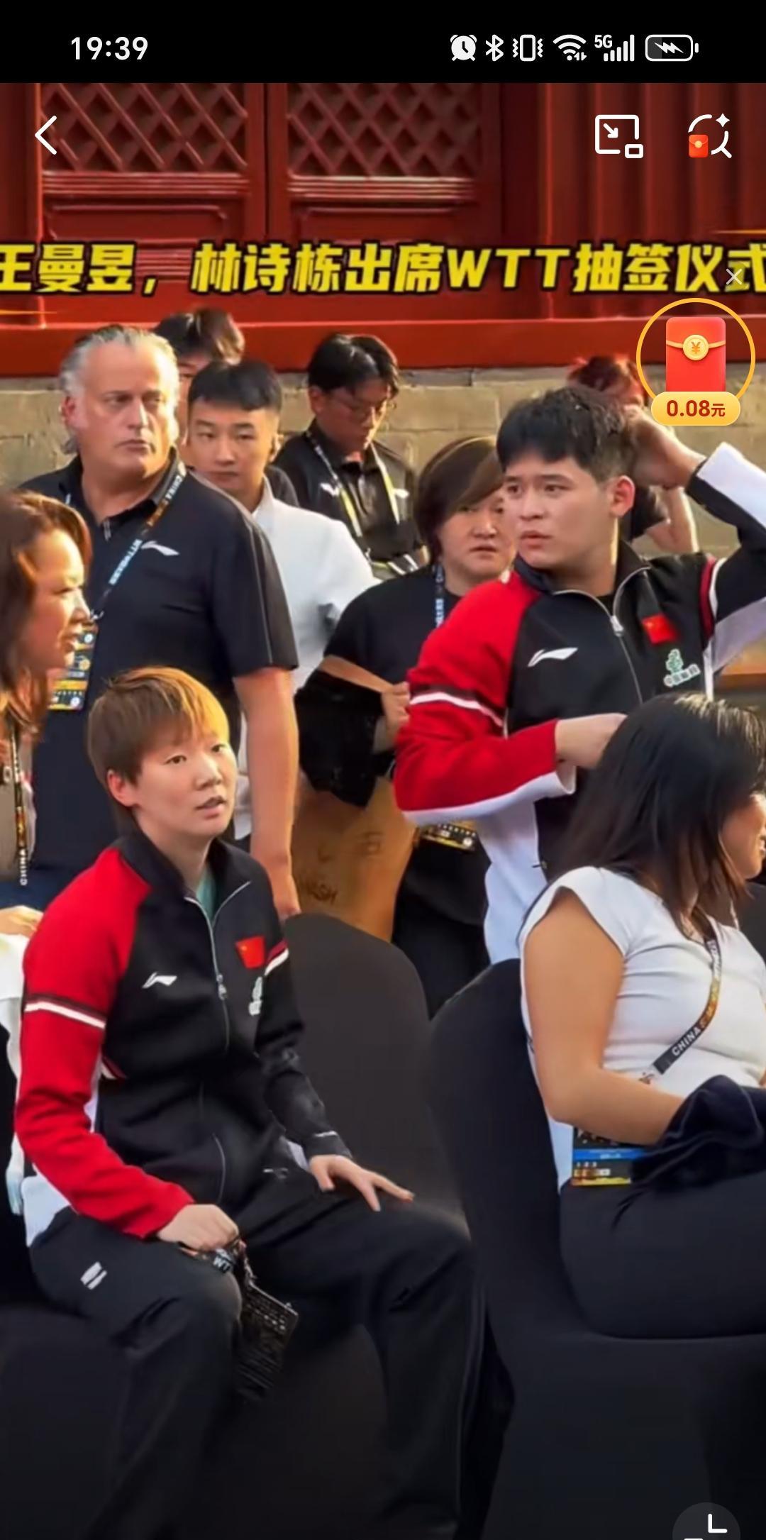 9月26日王曼昱好长时间不见了这次抽签也参加了,王曼昱和林诗栋坐在一起,看着两个