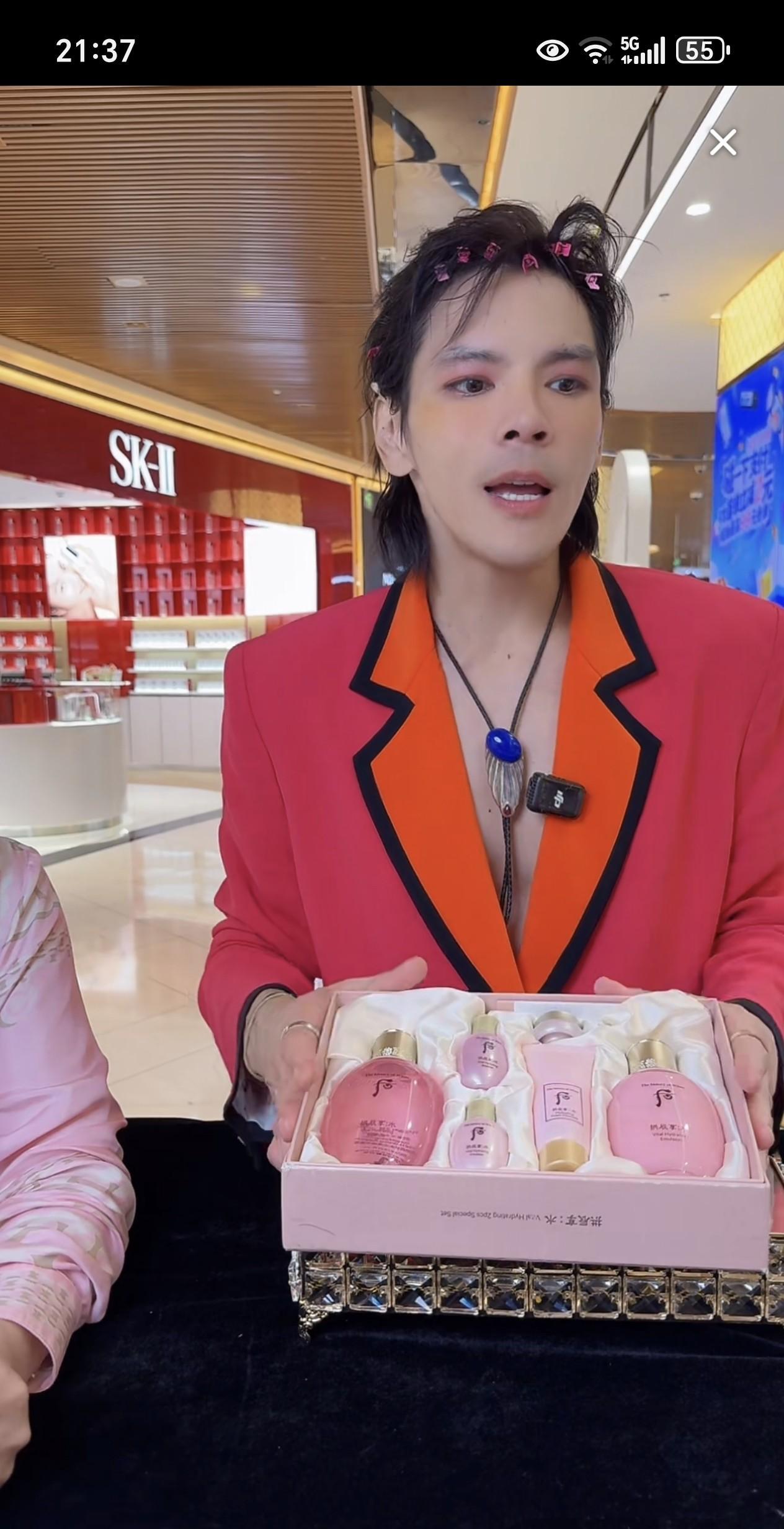 向佐卖美妆是认真的,别看他打扮得花俏,满头粉色小发夹,但是表情很严肃,介绍也很专