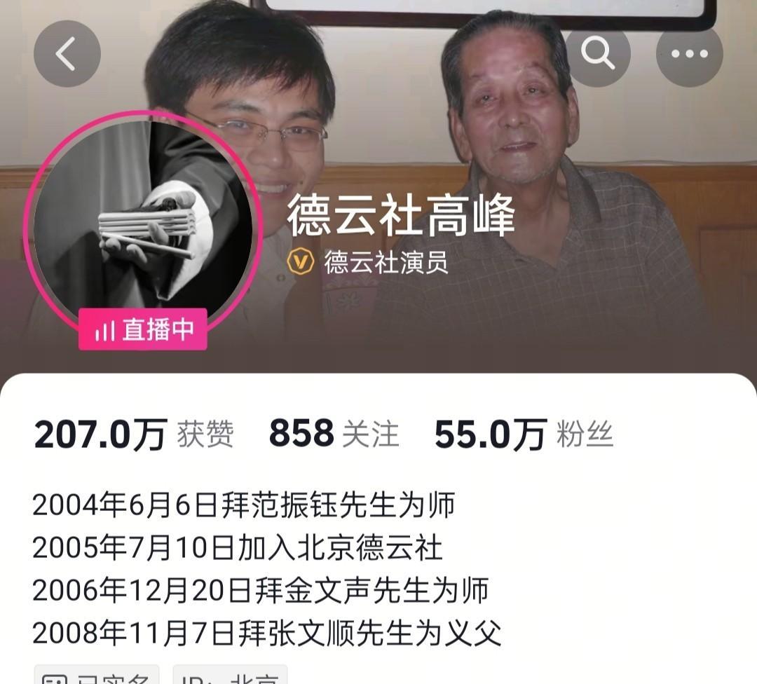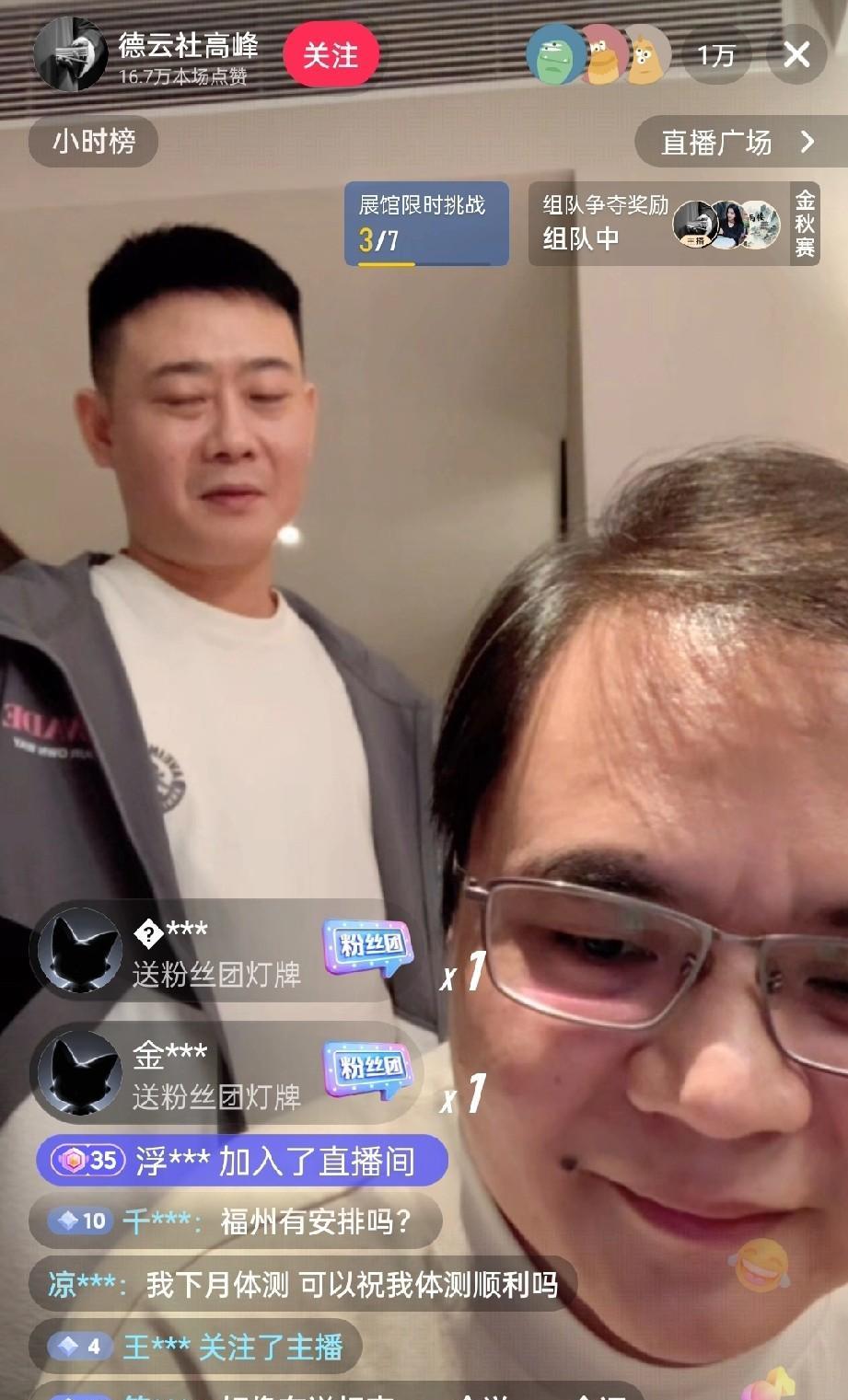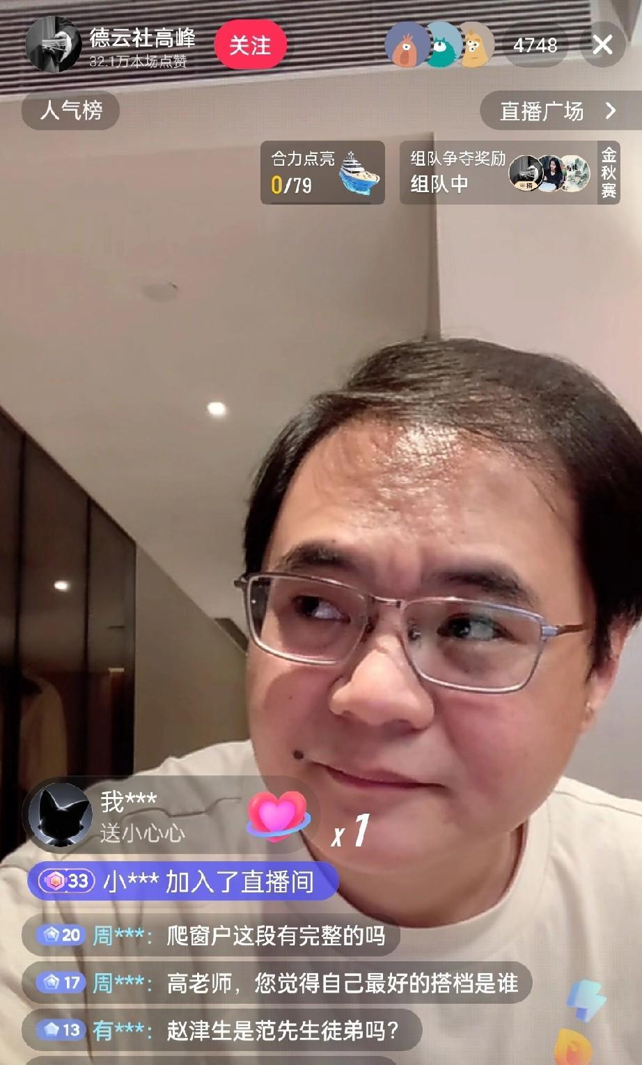 德云社高峰老师和搭档栾云平一起直播,轻轻松松一万+在线人数。两人一个64,一个6