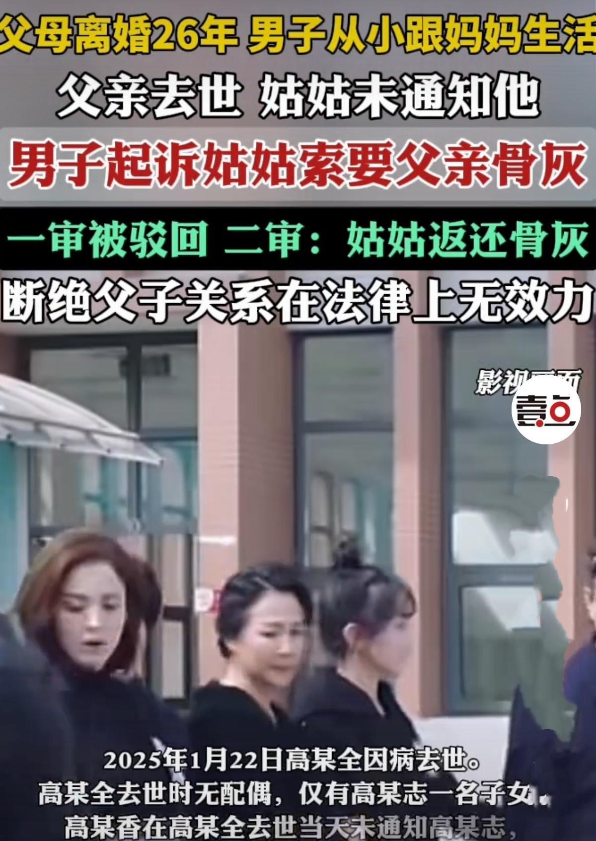 辽宁抚顺,男子在父母离婚后随母亲去了另一个城市生活,父亲每月给付抚养费。成年后,父子离得远联系就少了,后来父亲确诊为肝癌晚期,一年后离世。男子二姑未通知他,直接操办了父亲全部后事。男子非常气愤,作为父亲唯一的儿子,他去世都不知道!于是,他一纸诉状将姑姑告上法庭,索要亡父的骨灰、及各种证件和银行卡。而姑姑却说其父亲生前已与他断绝父子关系,加上骨灰不知放在哪了,其余的证件都已丢失,无法返还。一审驳回男子全部诉求。二审却有不同看法。 1999年6月,高志还很小,父母的婚姻就走到尽头,经法院调解判令他的抚养权归母亲,两人共同抚养他,父亲按月给付抚养费。 从此后,他就随着母亲李珍去了重庆,而父亲留在抚顺生活。 随着时间推移,高志长大成人,与父亲高大全的联系也因距离和生活轨迹差异,慢慢变得稀疏。 到2024年初,高大全被诊断为肝癌晚期,他的二姐高玉香承担起了照顾他的责任,可他病情发展的特快,仅撑到2025年1月22日就去世了。 谁知高玉香在弟弟去世当天,未把死讯告诉高志,随后就操办了他的后事,签署了医院及殡仪馆相关手续,他的骨灰、骨灰安放证及身份证、医保卡、死亡证明等,全部由她一手包办。 后来高志知道父亲去世的消息崩溃了,父亲从确诊肝癌晚期到病逝,自己这个唯一的儿子,从头到尾没收到一句通知。 他认为父亲有儿子,姑姑越俎代庖,凭啥剥夺自己祭奠、追思父亲的权利? 他多次向姑姑索要亡父的骨灰无果后,一纸诉状将高玉香告上法庭,索要亡父的骨灰、骨灰安放证、死亡医学证明、身份证、银行卡等。 《民法典》第1121条,配偶、子女、父母均为第一顺序继承人,共同享有对被继承人遗体的平等继承权。 高志认为,父亲一直未婚,其父母均已过世,他是父亲的唯一儿子,有权索要父亲的骨灰及其他。 《民事诉讼法》第67条规定:当事人对自己提出的主张,有责任提供证据。 姑姑表示,骨灰不知放在哪里了,骨灰安放证、身份证、医保卡、死亡证明都丢了,无法归还。 法院审理认为,高志作为高大全的唯一儿子,应享有祭奠的权利,高玉香应当予以配合,她隐瞒高大全死亡一事确有不当。 但高玉香在高大全死亡前对其进行照顾,死亡后处理后事,并对骨灰进行存放,本是尽到了作为姐姐的责任。 高玉香辩称无法明确骨灰具体存放位置,高大全的死亡医学证明、身份证、银行卡等,高玉香说死亡证明等已丢失,也无法返还。 法院认为:高志未能提供证据,证明其主张之物仍被高玉香占有,返还在客观上难以实现,可采取补办等办法去解决问题。 一审判决,驳回高某志的全部诉讼请求。 高志提起上诉,请求撤销一审判决,仍索要亡父的骨灰以及骨灰安放证。 这次高玉香提供于2024年11月26日给高大全录制一段视频:我以后要是不在了,家里的一切东西,房子、车等,都由我二姐说的算,别人无权干涉,包括我儿子也不行,他没有权处置,只由我二姐一人处置。 2025年1月12日,高玉香再次给高大全录制一段视频:坚决不留墓地,撒海葬,撒不了海葬撒河里,这是我的心愿,不留墓地,儿子都和我断绝关系了,坚决不留。 以此证明高大全已声明与高志断绝父子关系。他的遗产都归自己所有。 《民法典》第994条规定:死者的姓名、肖像、名誉、荣誉、隐私、遗体等受到侵害的,其配偶、子女、父母有权依法请求行为人承担民事责任。 高志作为高某全的唯一子女,对父亲具有深厚的感情,享有祭奠父亲的权利。 高玉香虽为姐姐,尽到了照顾及处理后事等家属责任,但她未通知高志这一行为侵犯对父亲的知情权和祭奠权。 她提供的视频资料并不能证明高大全让其保管骨灰以剥夺高某志祭奠权的明确意思表示。 高志从血缘关系和亲属关系的亲疏来看,其权利顺位优先于姑姑高玉香。尽管高玉香在高大全生前进行了照顾,死亡后也处理了后事,但这并不能改变高志作为子女在权利顺位上的优先性。 《民法典》第1045条规定:亲属包括配偶、血亲和姻亲。配偶、父母、子女、兄弟姐妹、祖父母、外祖父母、孙子女、外孙子女为近亲属。 同时,基于血缘关系产生的亲子关系是法定的、不可随意改变的。 高玉香主张高大全生前明确表示与高某志断绝父子关系,试图以此说明高志不应享有对父亲骨灰的相关权利。 父子关系是基于血缘这一客观事实而产生的,具有天然的、不可割断的特性。 所谓的断绝父子关系,无论是通过口头声明还是书面协议等方式,都无法改变双方基于血缘的亲子关系,在法律上没有法律效力。 因此,高大全生前关于儿子都和我断绝关系了的表述不能成为剥夺高志作为子女权利的依据。 最终二法院于7月29日判决:依据最亲近原则,撤销一审判决,改判高玉香向高志返还其父的骨灰。 (人物为化名) 对此您怎么看?
