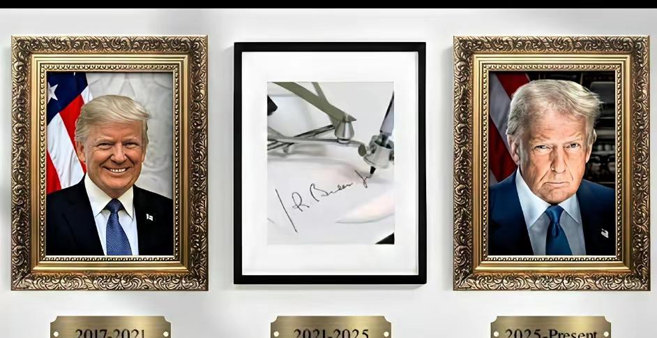 从这件事看,特朗普不是一点两点的任性! 最近,特朗普把白宫走廊里的美国建国以来的总统照片,重新洗牌后挂了出来,其中把上一届与特朗普竞选胜出的拜登的照片竟然换成了一画简单的抽象画,画的意义“什么都不是?” 其实,特总这样子搞法太任性。必竟美国的排名按任职总统的时间顺序排位是有讲究的,特朗普这么一搞,等于是违背了法律。 同时也说明特朗普是一个连起码的尊重的观念都没有的人。