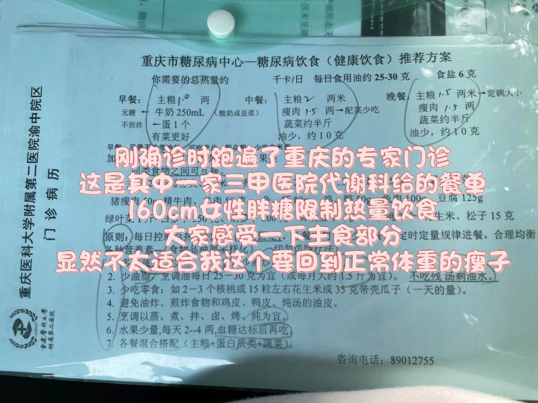很多朋友说去医院拿的餐单,早餐50g主食、午餐75g主食、晚餐75g主食,于是回家坚持早餐50g米饭、午餐晚餐75g米饭,餐餐吃完运动,即便饿得心慌,都觉得自己在迈向健康。结果呢,各项指标越来越异常,甚至复查个糖耐、胰岛素更差得离谱了。