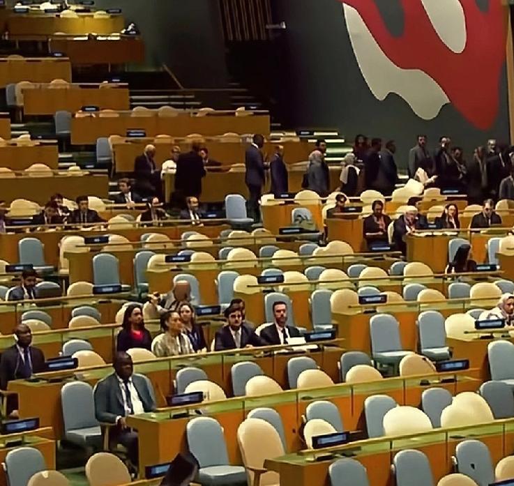 内塔尼亚胡从来不知道羞耻,在联合国大会发表讲话,众多代表起身离场表示抗议。虽然不